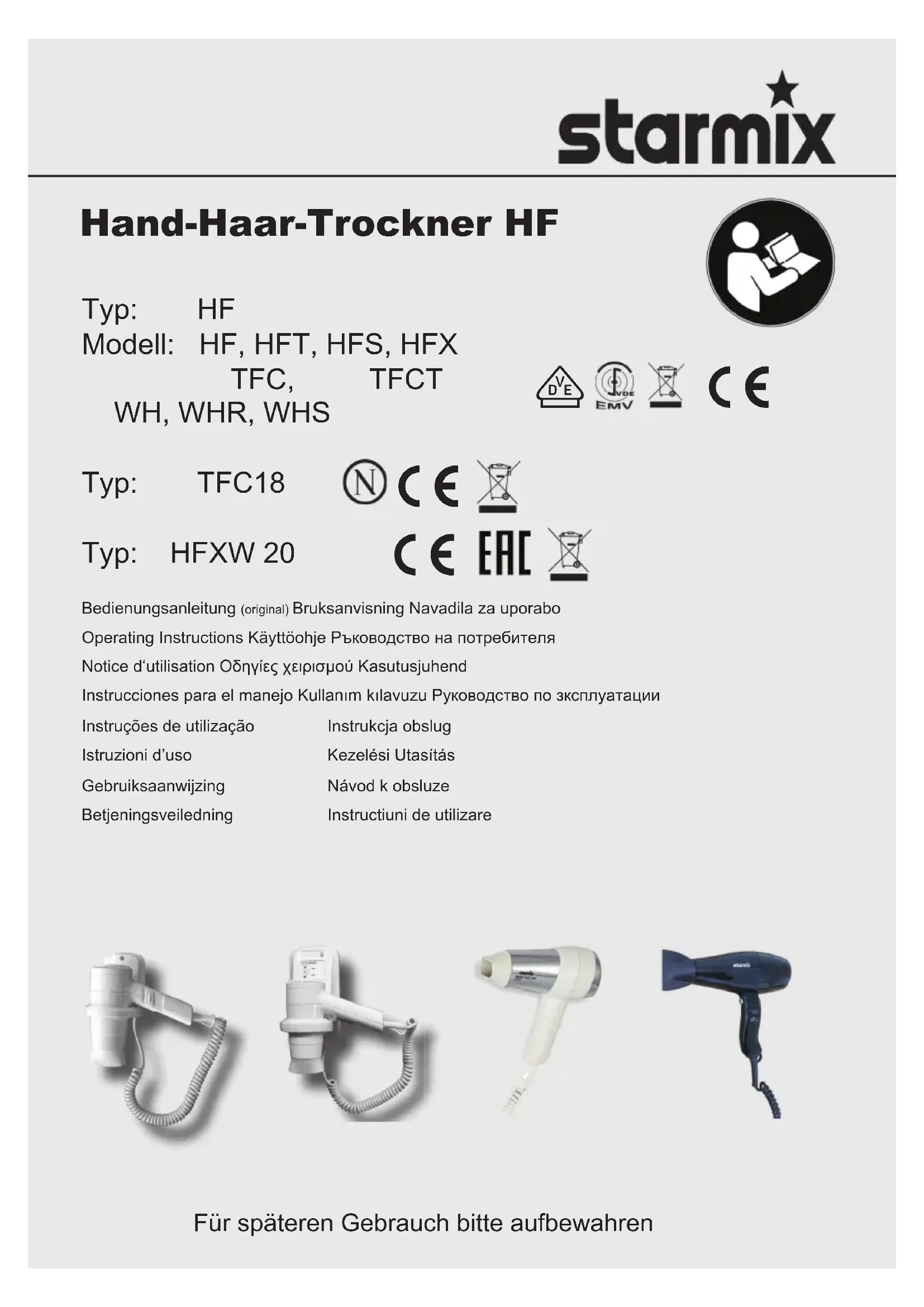 HFT12 - Sèche-cheveux Starmix - Notice d'utilisation et mode d'emploi gratuit