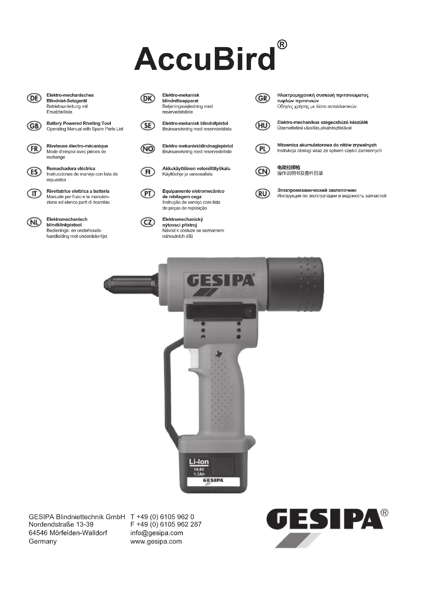 AccuBird - Outil à main GESIPA - Notice d'utilisation et mode d'emploi gratuit