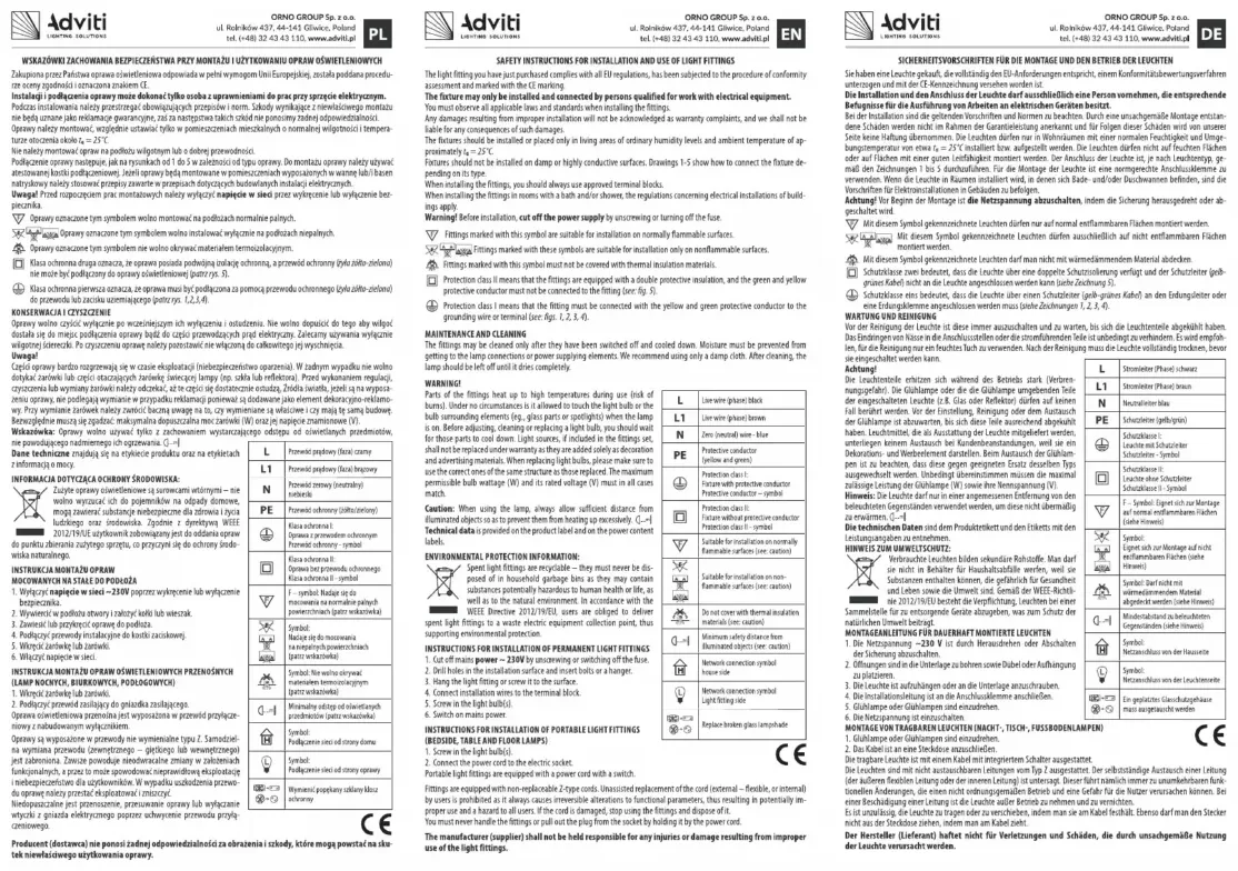 Retrouvez gratuitement la notice de l'appareil AD-LD-6241BE27T Adviti au format PDF.