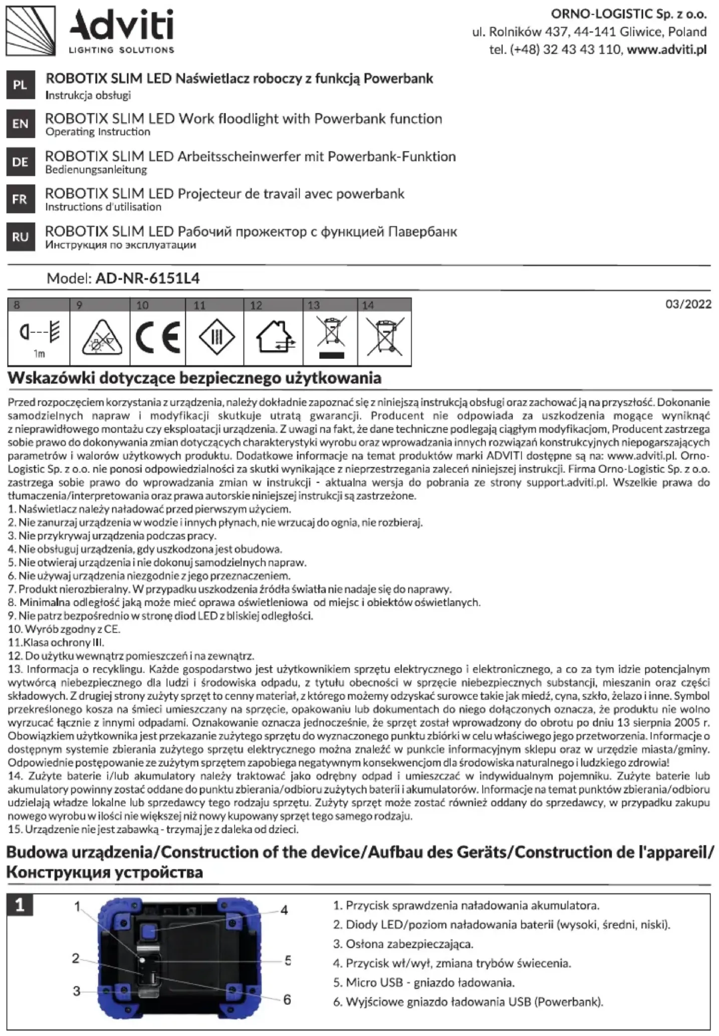 Retrouvez gratuitement la notice de l'appareil AD-NR-6151L4 Adviti au format PDF.