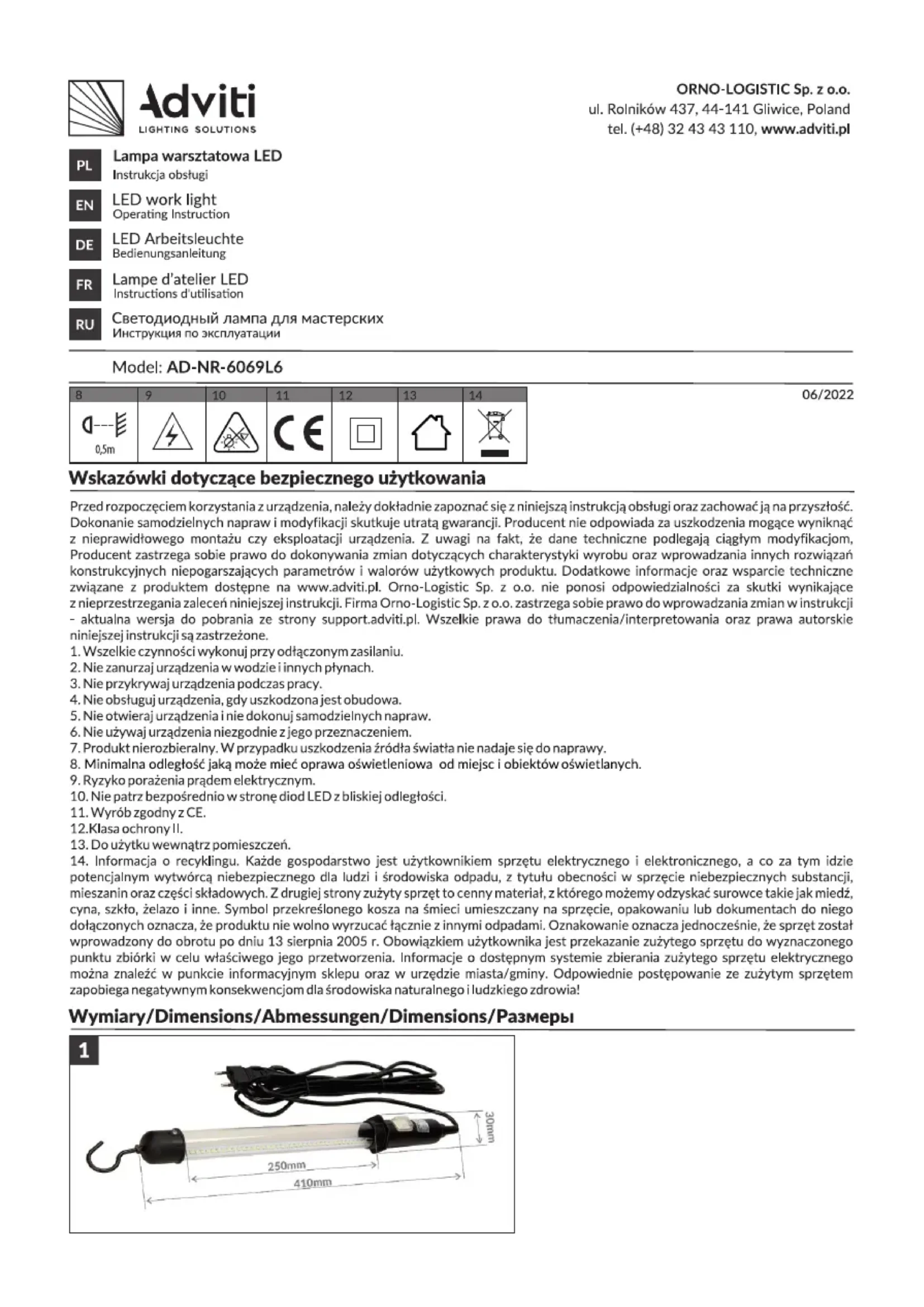 AD-NR-6069L6 - Lampe Adviti - Notice d'utilisation et mode d'emploi gratuit