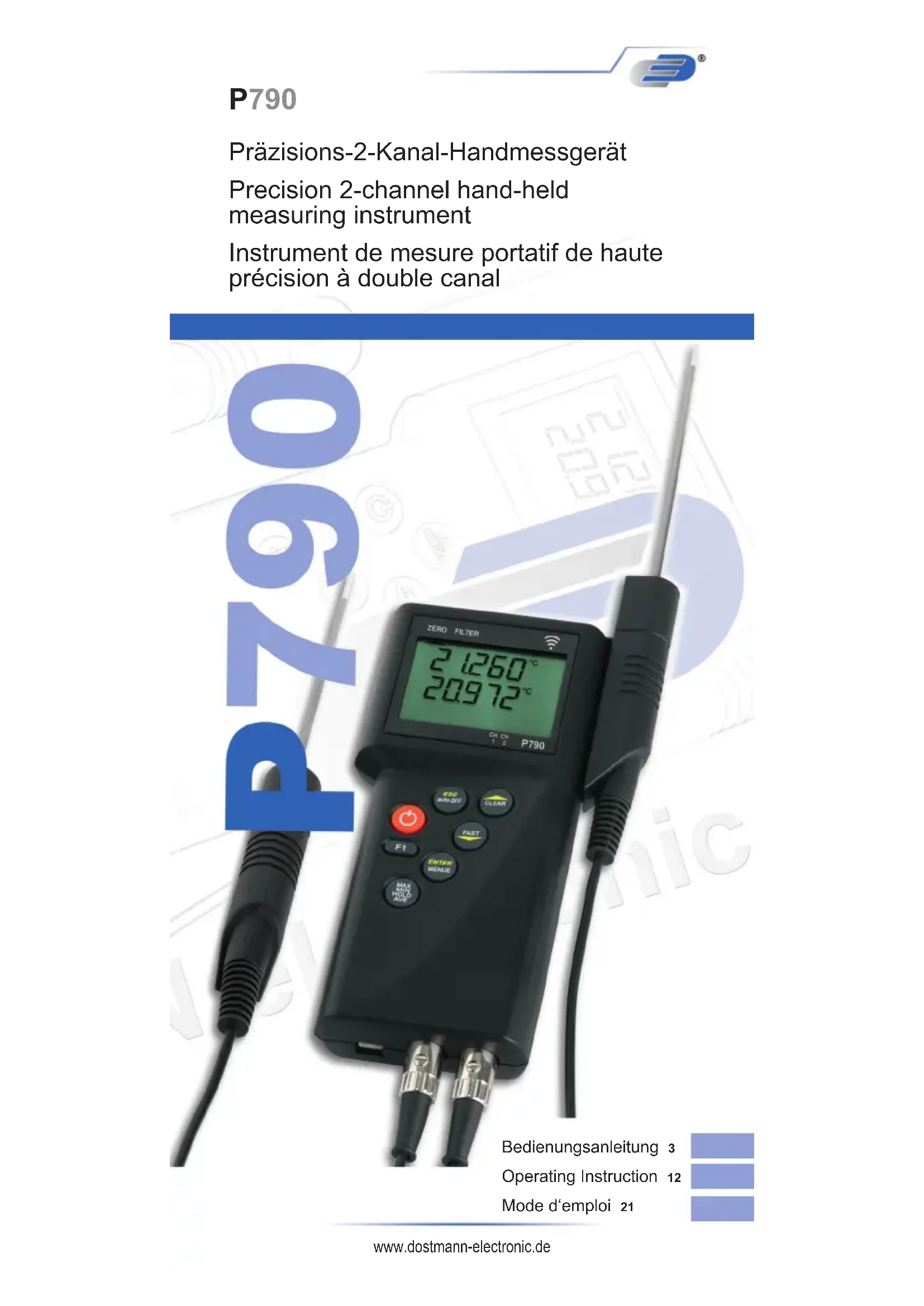 Retrouvez gratuitement la notice de l'appareil P790 Dostmann Electronic au format PDF.