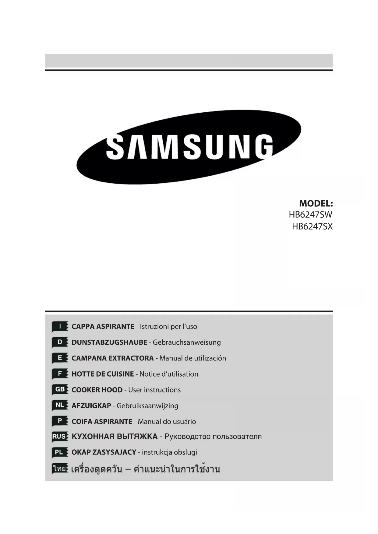 HB6247SW - Hotte SAMSUNG - Notice d'utilisation et mode d'emploi gratuit