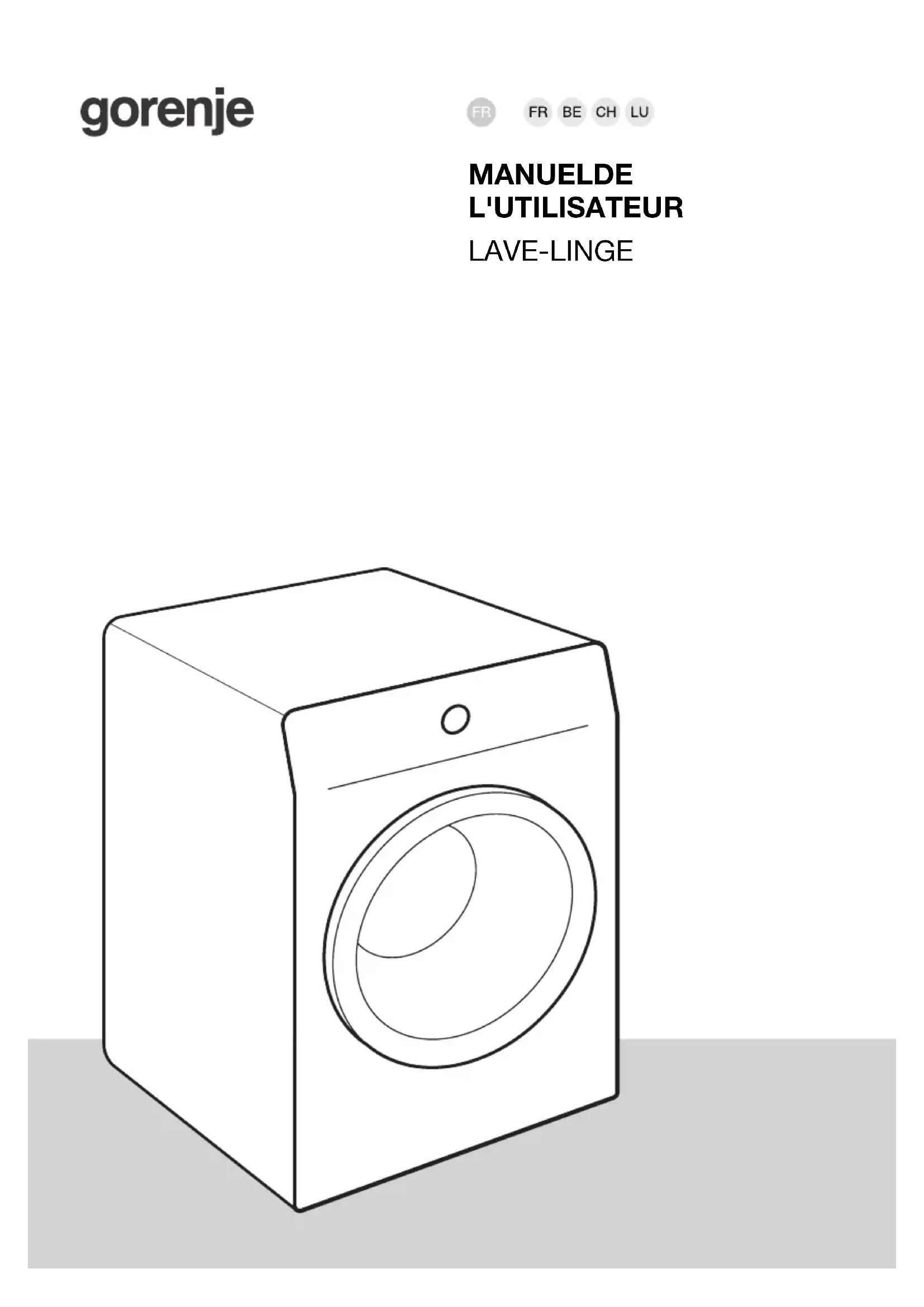 des espaces à usage collectif situés dans des immeubles résidentiels ou dans des laveries automatiques. Cet appareil n’est pas prévu pour les personnes (y compris les enfants) à capacités physiques ou mentales réduites, ou manquant d’expérience et de connaissances. Elles ne pourront l’utiliser que sous la surveillance d'un adulte responsable de leur sécurité et après avoir été mises au courant de son fonctionnement. ATTENTION ! La machine à laver ne peut être utilisée qu’avec le cordon secteur fourni. RISQUE DE CHOC ÉLECTRIQUE ! Si le câble secteur est endommagé, faites-le remplacer par le fabricant, le service après-vente agréé, ou un technicien de qualification équivalente afin d'éviter tout danger. ATTENTION ! L'appareil ne doit pas être commandé par un interrupteur externe tel qu'un minuteur, ou raccordé à un réseau électrique soumis à de fréquents délestages. La notice d'utilisation est disponible sur notre site www.gorenje.com. Suivez les instructions pour raccorder correctement le lave-linge Gorenje à l'arrivée d'eau et à l'électricité (voir le chapitre «INSTALLATION ET RACCORDEMENTS»). 6Le raccordement à l'arrivée d'eau et au réseau électrique doit être réalisé par un professionnel ou un technicien expérimenté. Les réparations et l’entretien liés à la sécurité et aux performances doivent être effectués par un professionnel qualifié. N'installez pas le lave-linge dans un local où la température risque de descendre au-dessous de 5°C, car certaines pièces de la machine peuvent se détériorer si l'eau gèle à l'intérieur. Les ouvertures de ventilation situées à la base du lave-linge ne doivent pas être obstruées par un tapis. Lors du branchement du lave-linge à l’arrivée d’eau, utilisez obligatoirement le flexible d’alimentation et les joints fournis. La pression de l'eau doit être comprise entre 0,05 et 0,8 MPa (0,5–8 bar). Pour raccorder l'appareil à l'arrivée d'eau, utilisez toujours un flexible d'alimentation neuf ; ne réutilisez pas un ancien tuyau. L’embouchure du flexible de vidange doit atteindre une conduite d'évacuation des eaux usées. Avant de lancer le programme, appuyez sur le hublot à l’endroit indiqué pour le verrouiller. Il ne peut pas s'ouvrir durant le lavage. Avant d'effectuer votre premier lavage, nous vous recommandons d'éliminer toutes les impuretés du tambour avec le programme Cotton 90°C (Coton 90°C) (voir le TABLEAU DES PROGRAMMES). 7Lorsque le lavage est terminé, fermez le robinet d'arrivée d'eau et débranchez la fiche de la prise secteur. Utilisez le lave-linge exclusivement pour laver du linge tel que décrit dans la présente notice. La machine n'est pas prévue pour le nettoyage à sec. Cet appareil ne libère pas d'ions d'argent pendant le lavage. Employez exclusivement des produits lessiviels destinés au lavage en machine. Le constructeur décline toute responsabilité pour les dommages et décolorations éventuels causés aux joints d’étanchéité et pièces en plastique par l’utilisation incorrecte de produits de blanchiment et/ou teintures. Pour détartrer la machine, utilisez uniquement des produits contenant des agents anticorrosion (utilisez uniquement des détartrants non corrosifs). Suivez les indications du fabricant et terminez le détartrage par plusieurs rinçages ou lancez le Drum clean (Nettoyage Tambour) (Programe d'autonettoyage) afin d’éliminer tous les résidus acides (vinaigre par exemple). RISQUE D'INCENDIE ! N’utilisez en aucun cas dans votre machine des nettoyants chimiques contenant des solvants, car ils peuvent dégager des gaz toxiques, endommager l’appareil, et présenter des risques d’incendie et d’explosion. 8Sécurité enfants ATTENTION ! Maintenez les enfants de moins de 3 ans à l'écart de l'appareil à moins de les surveiller en permanence. Ne laissez pas les enfants jouer avec l'appareil. Rangez les détergents et assouplissants hors de la portée des enfants. Activez la Sécurité enfants. Voir le chapitre «ÉTAPE 4 : CHOIX DES RÉGLAGES/Sécurité enfants». Avant de fermer le hublot et de lancer un programme, assurez-vous qu'il n'y a rien d'autre que du linge dans le tambour (par exemple, qu'un enfant n'a pas grimpé dans le lave-linge et a refermé le hublot depuis l'intérieur). Ce lave-linge a été fabriqué en conformité avec toutes les normes de sécurité en vigueur. Les enfants à partir de 8 ans et les personnes disposant de capacités physiques, sensorielles ou mentales réduites – ou manquant d'expérience et de connaissances – peuvent utiliser ce lave-linge sous surveillance, à condition d'avoir reçu des instructions sur la manière de s'en servir en toute sécurité et d'avoir bien compris les risques auxquels ils pourraient s'exposer. Les enfants ne doivent pas jouer avec l'appareil. Les enfants ne doivent pas non plus effectuer sans surveillance des tâches de nettoyage et d'entretien. 9Risque de brûlures SURFACE BRÛLANTE ! Lors du lavage à haute température, le hublot en verre chauffe. Faites attention à ne pas vous brûler et veillez à ce que les enfants ne jouent pas à côté du hublot.