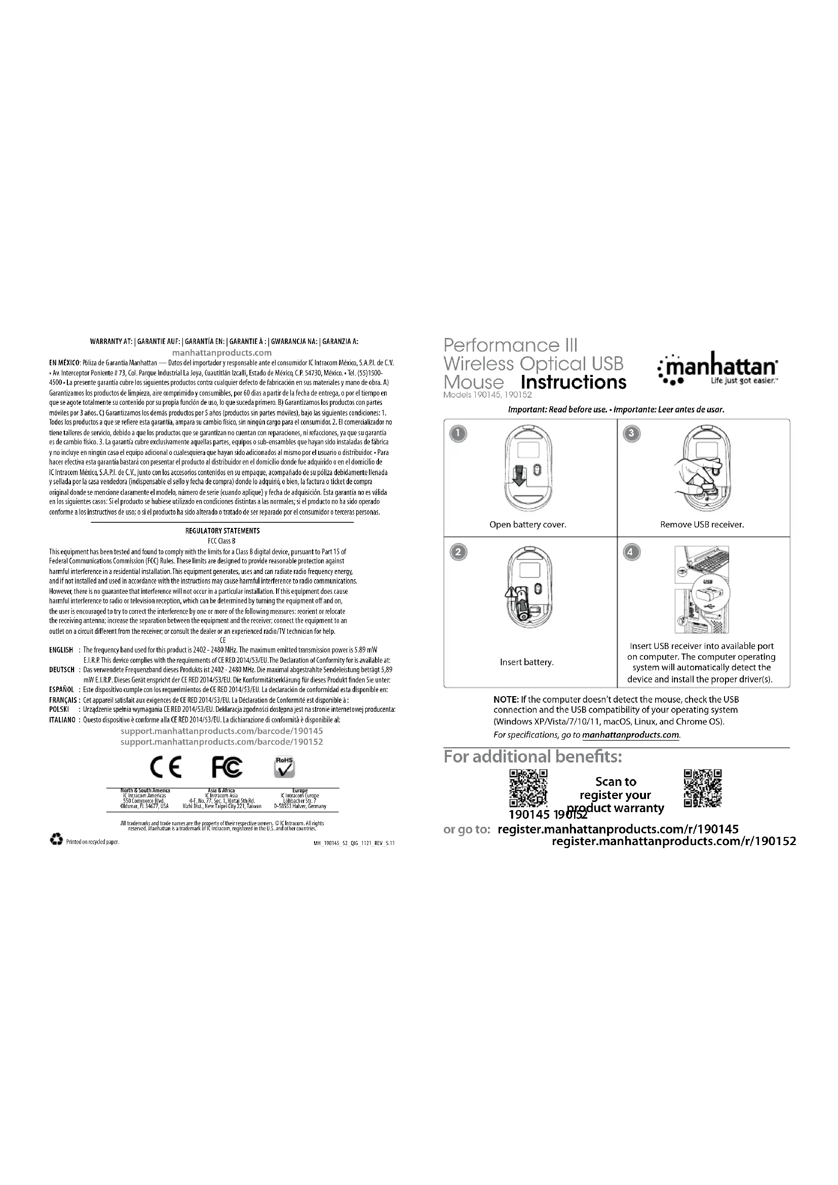 190152 - Souris MANHATTAN - Notice d'utilisation et mode d'emploi gratuit