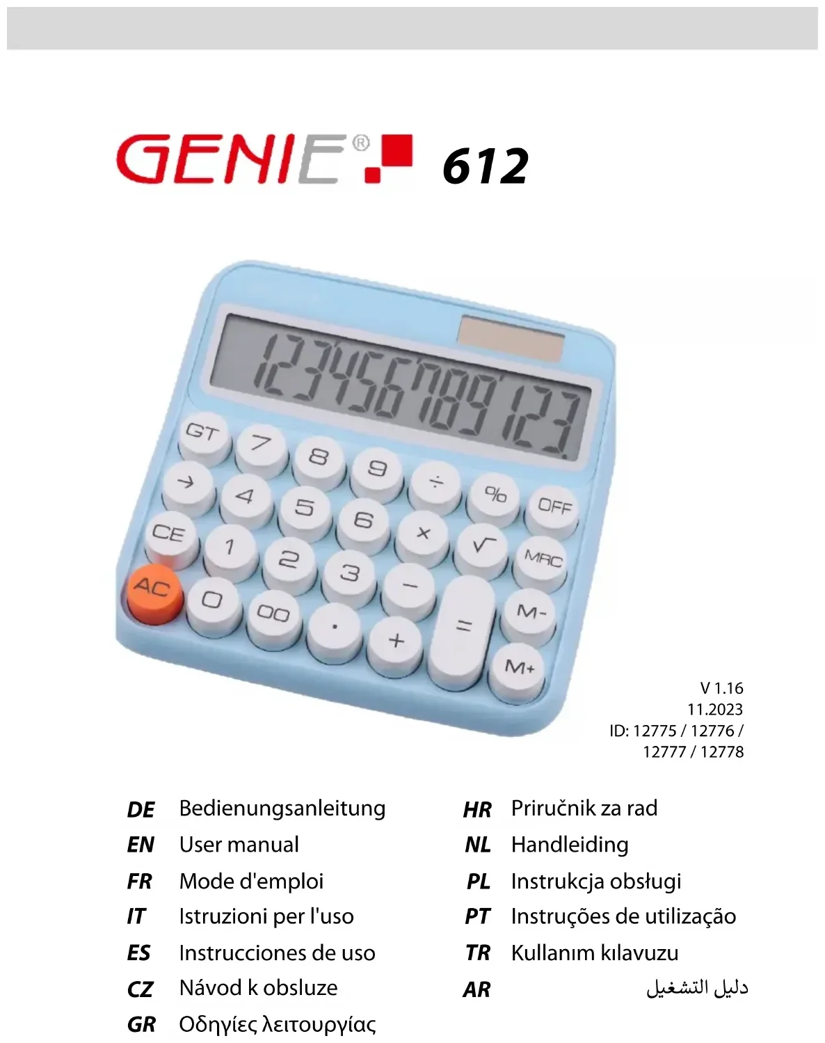 612 - Calculatrice Genie - Notice d'utilisation et mode d'emploi gratuit