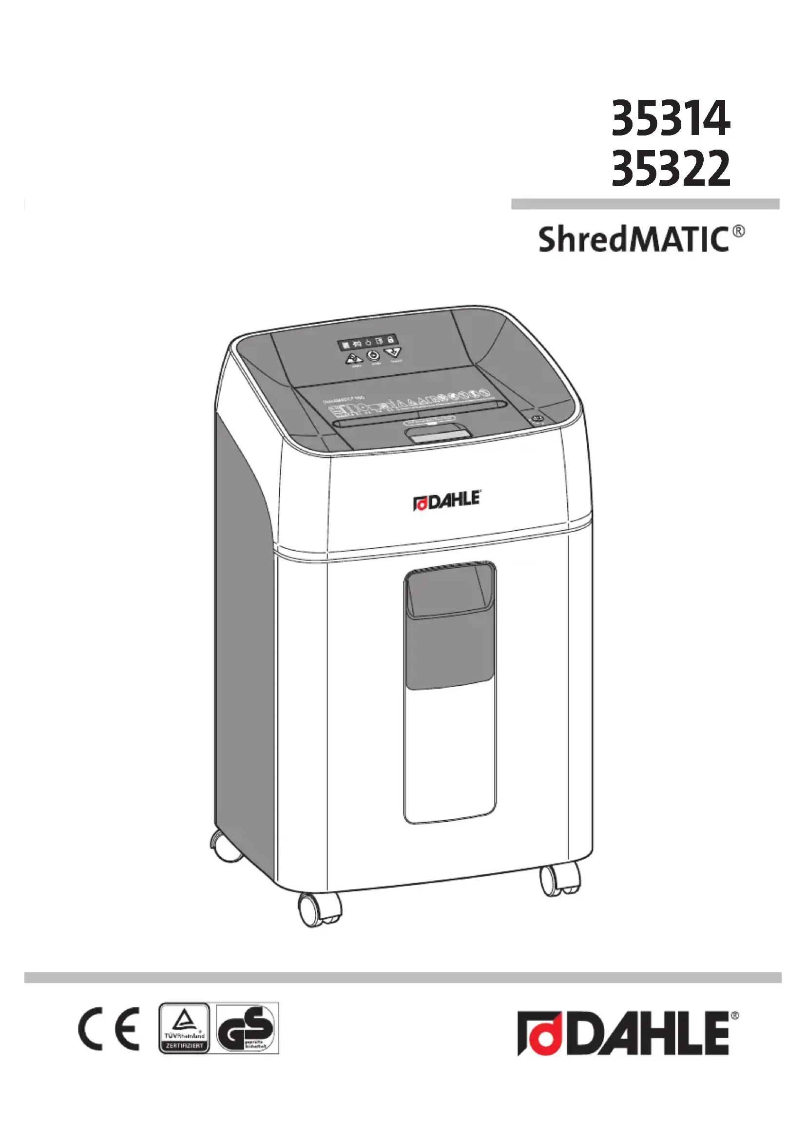 Retrouvez gratuitement la notice de l'appareil ShredMATIC SM 300 Dahle au format PDF.