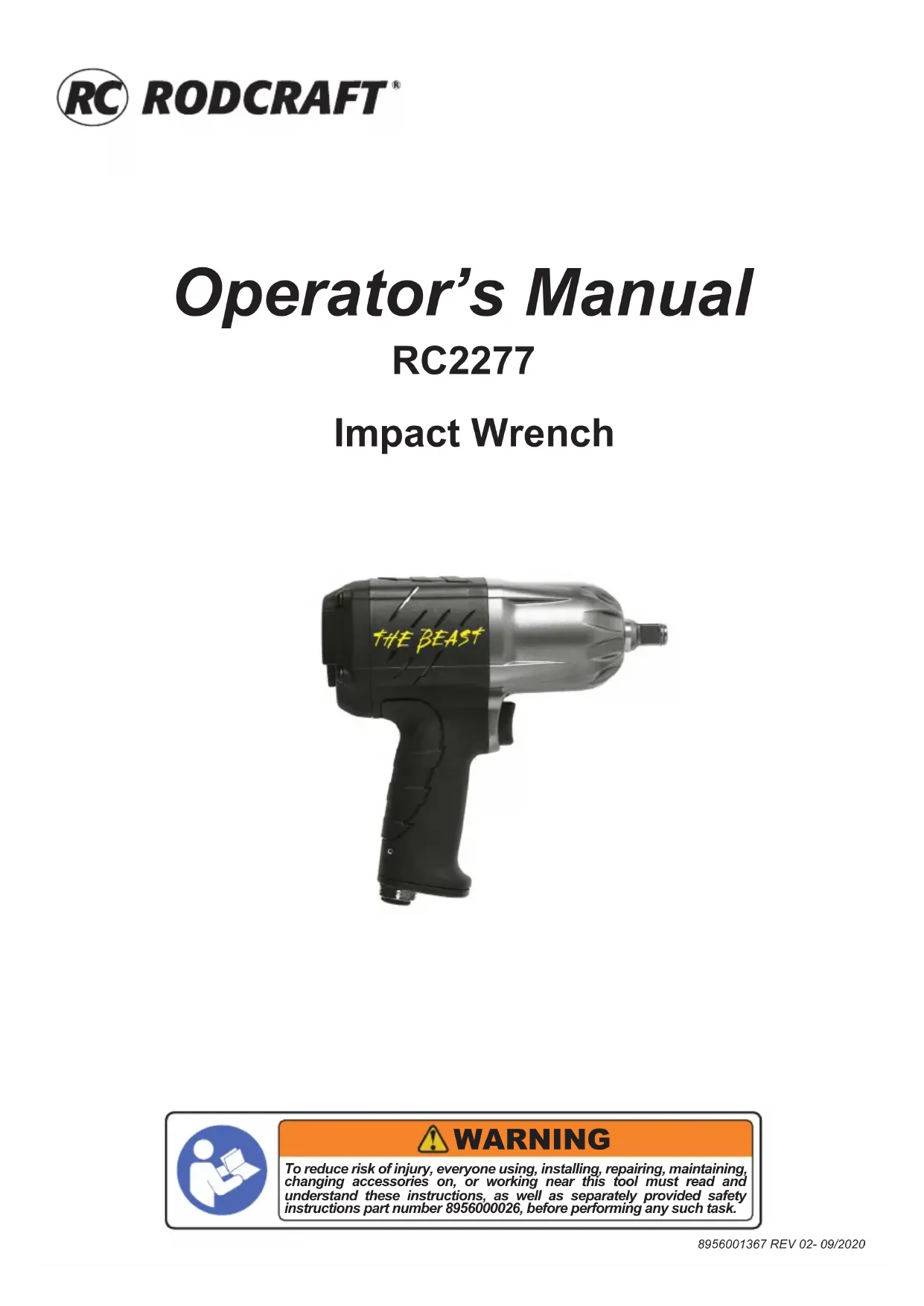 | Caractéristiques techniques | Visseuse pneumatique Rodcraft RC2277, couple maximal de 50 Nm, vitesse à vide de 0-12 000 tr/min, alimentation pneumatique. |