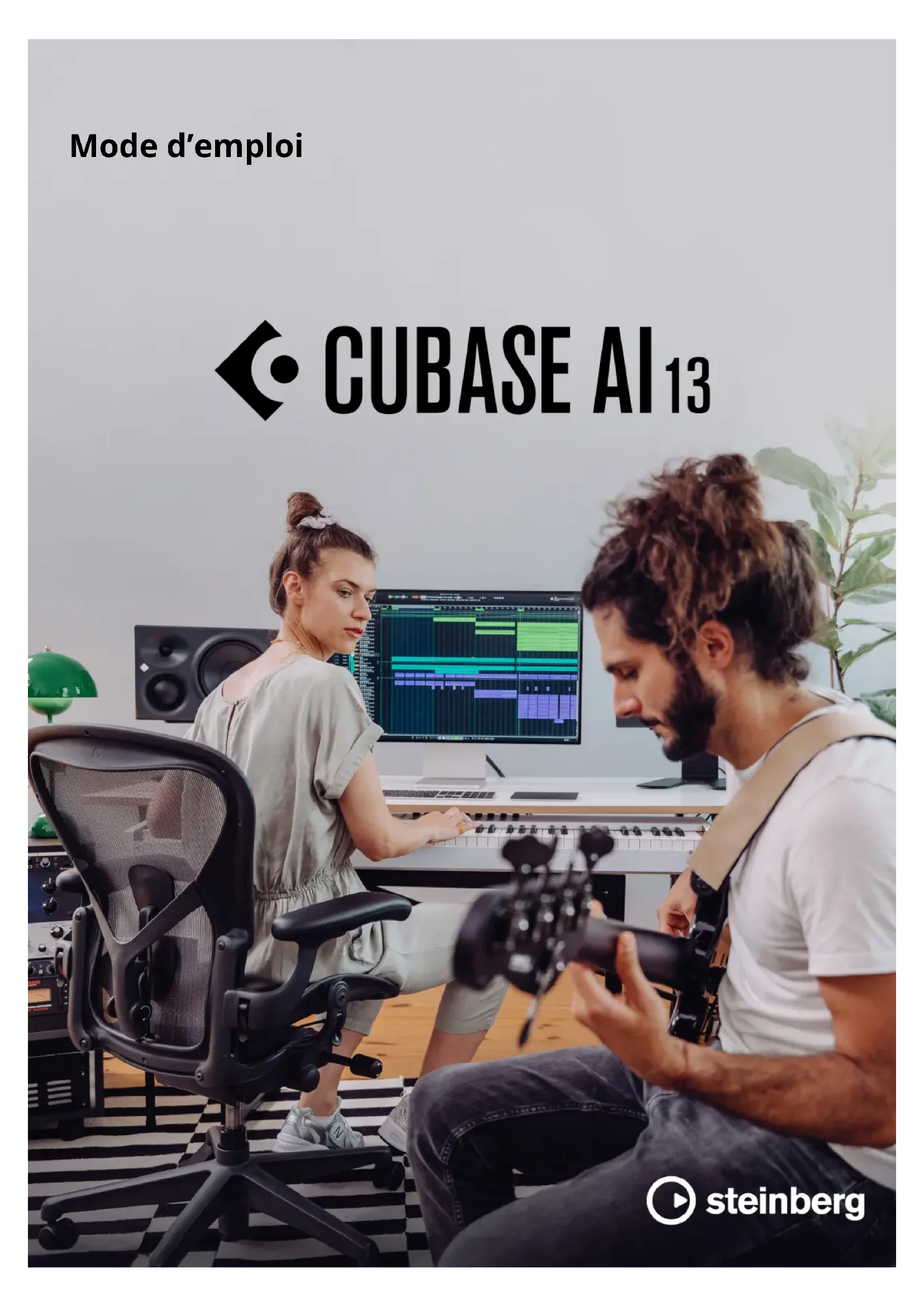 Cubase AI 13.0.30Introduction Bienvenue dans le Mode d’emploi de Steinberg Cubase. Vous y trouverez des informations détaillées sur l’ensemble des fonctions et fonctionnalités de l’application. Les captures d’écran ont été prises dans Cubase Elements. Documentation et systèmes d’exploitation Cette documentation a été établie pour les systèmes d’exploitation Windows et macOS. Les fonctionnalités et les paramètres propres à l’une de ces plates-formes sont clairement indiqués. Dans tous les autres cas, les descriptions et procédures de la documentation valent pour Windows comme pour macOS. Certains points sont à prendre en compte: ● Les captures d’écran ont été prises sous Windows. ● Certaines fonctions du menu Fichier sous Windows se trouvent dans le menu du nom du programme sous macOS. Documents PDF et documentation en ligne La documentation comprend plusieurs documents. Vous pouvez les lire en ligne ou les télécharger à partir de la page suivante: steinberg.help. Pour accéder à la page steinberg.help directement à partir du programme, sélectionnez Aide> Aide de Cubase. Mode d’emploi Il s’agit du principal document de Cubase référence, il décrit en détail les opérations, les paramètres, les fonctions et les techniques du programme. Référence des plug-ins Ce document décrit les fonctionnalités et les paramètres des plug-ins VST et des instruments VST intégrés. Contrôleurs externes Liste des contrôleurs MIDI externes pris en charge. Groove Agent SE Ce document décrit les fonctionnalités et les paramètres de l’instrument VST intégré Groove Agent SE. HALion Sonic Ce document décrit les fonctionnalités et les paramètres de l’instrument VST intégré HALion Sonic. Steinberg Library Manager Ce document décrit comment enregistrer et gérer les bibliothèques VST Sound.