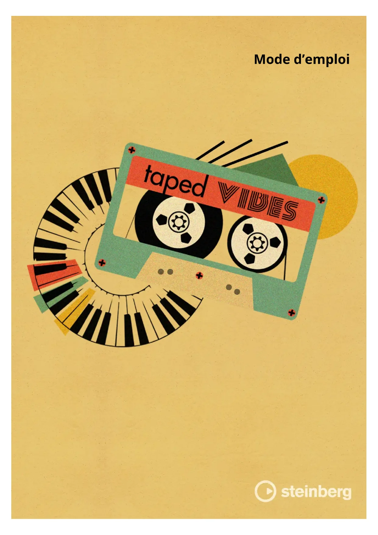 Mode d’emploiÉquipe de documentation de Steinberg: Cristina Bachmann, Martina Becker, Heiko Bischoff, Lillie Harris, Christina Kaboth, Dennis Martinez, Insa Mingers, Matthias Obrecht, Sabine Pfeifer Traduction: Ability InterBusiness Solutions (AIBS), Moon Chen, Jérémie Dal Santo, Rosa Freitag, GiEmme Solutions, Josep Llodra Grimalt, Vadim Kupriianov, Roland Münchow, Boris Rogowski, Sergey Tamarovsky Le présent document a été conçu pour les personnes aveugles ou malvoyantes. En raison du grand nombre d’images qu’il contient et de leur complexité, veuillez noter qu’il n’a pas été possible d’intégrer de descriptions textuelles des images. Les informations contenues dans ce document sont sujettes à modication sans préavis et n’engagent aucunement la responsabilité de Steinberg Media Technologies GmbH. Le logiciel décrit dans ce document fait l’objet d’un Accord de Licence et ne peut être copié sur un autre support sauf si cela est autorisé spéciquement par l’Accord de Licence. Aucune partie de cette publication ne peut être copiée, reproduite ni même transmise ou enregistrée, sans la permission écrite préalable de Steinberg Media Technologies GmbH. Les détenteurs enregistrés de la licence du produit décrit ci-après sont autorisés à imprimer une copie du présent document pour leur usage personnel. Tous les noms de produits et de sociétés sont des marques déposées ™ ou ® de leurs propriétaires respectifs. Pour de plus amples informations, rendez-vous sur le site www.steinberg.net/trademarks. © Steinberg Media Technologies GmbH, 2023. Tous droits réservés. Taped Vibes_1.0.0_fr-FR_2023-12-14Taped Vibes Taped Vibes reprend l'un des pianos électriques les plus mythiques et y ajoute une touche jazzy. Ses échantillons ont bénécié du traitement d'un Space Echo, d'un préamplicateur d'époque et d'une DI Avalon Silver U5. Cet instrument HALion gratuit conviendra à tous les genres musicaux, depuis la Soul cheesie jusqu'à la Funk la plus abrasive. Character Commutateur On/Off Active/désactive les effets de caractère Vibrato et Distortion. Vibrato Ajuste l'intensité de l'effet vibrato avec une fréquence xe correspondant à celle de l'instrument d'origine. Distortion Le fait de tourner ce potentiomètre vers la droite augmente la distorsion et la saturation. Tout à gauche, aucune distorsion n'est appliquée. En conséquence, le son n'est pas traité.