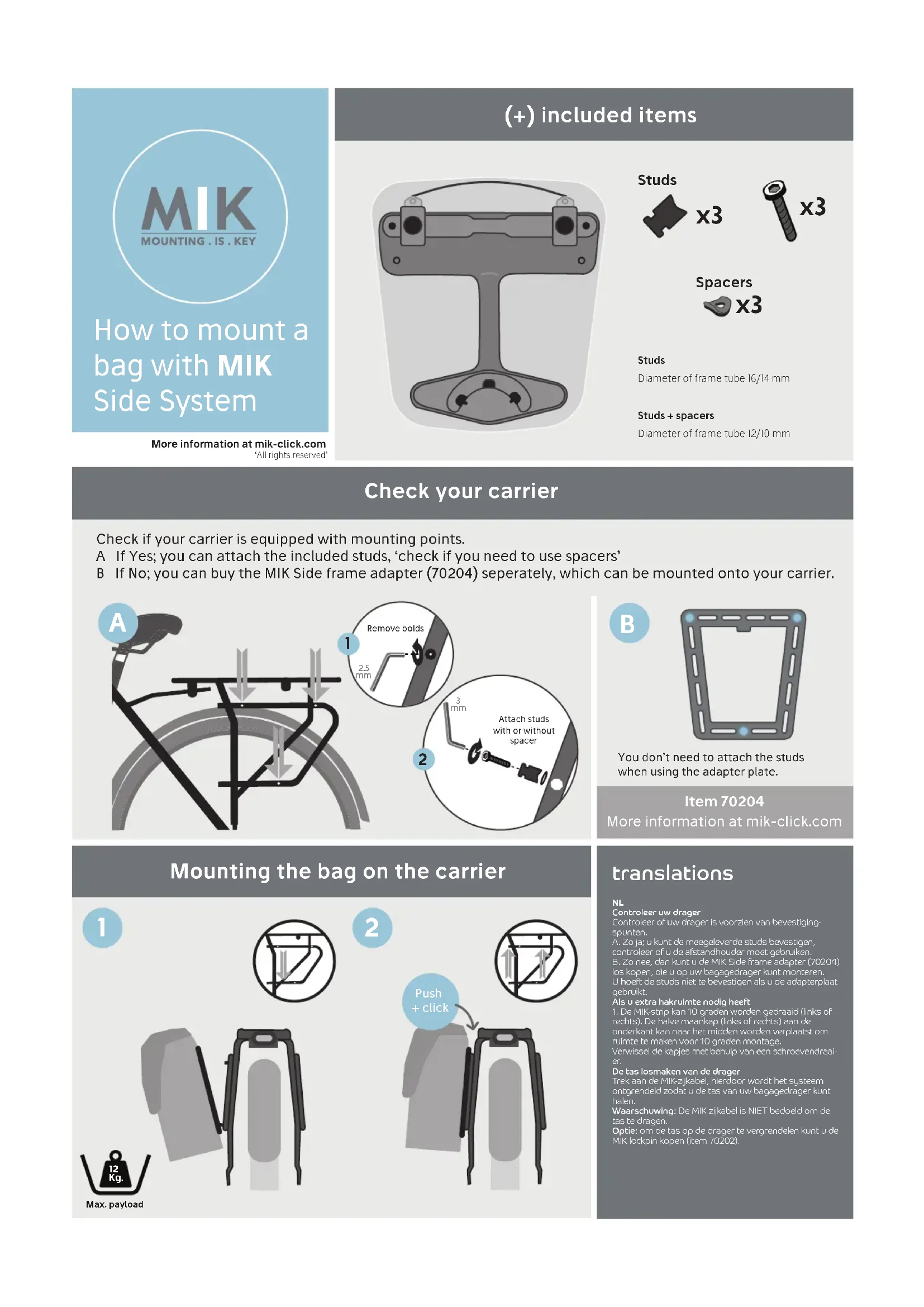 tible avec des produits d’ autres fournisseurs, l'utilisateur doit suivre les instructions d'assemblage et / ou l'utilisa- tion du fournisseur concernant ce produit. Dans ce cas, MIK n'est, en aucun cas, responsable du montage et / ou de l'utilisation des produits livrés par des autres fournisseurs. terms & conditions