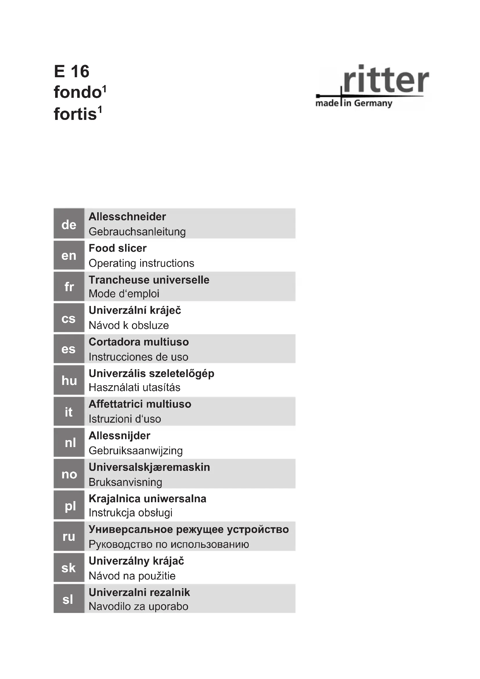 Retrouvez gratuitement la notice de l'appareil Fortis 1 Ritter au format PDF.