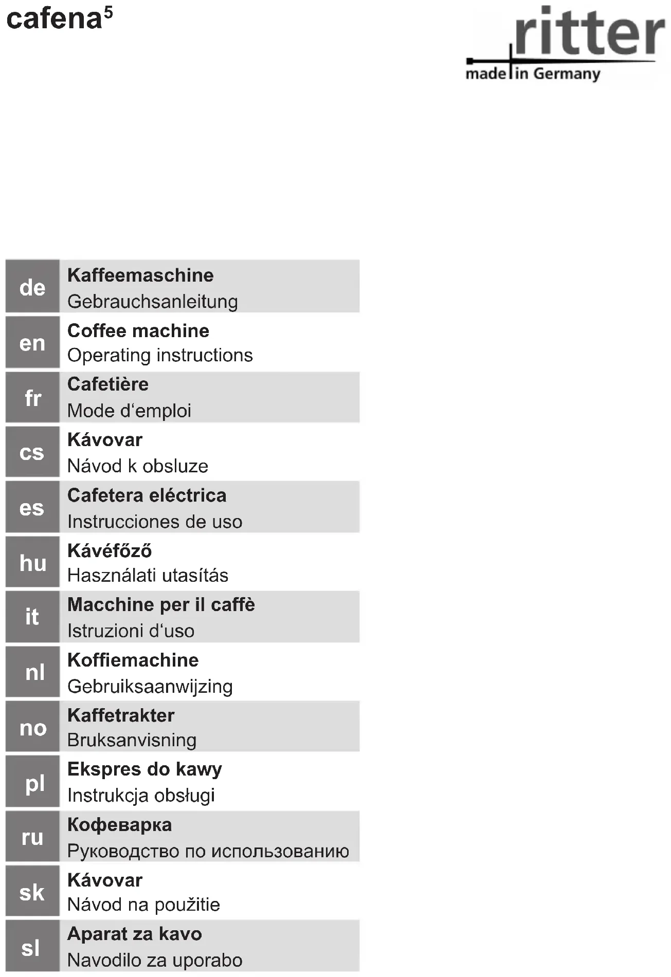 Retrouvez gratuitement la notice de l'appareil Cafena 5 Ritter au format PDF.