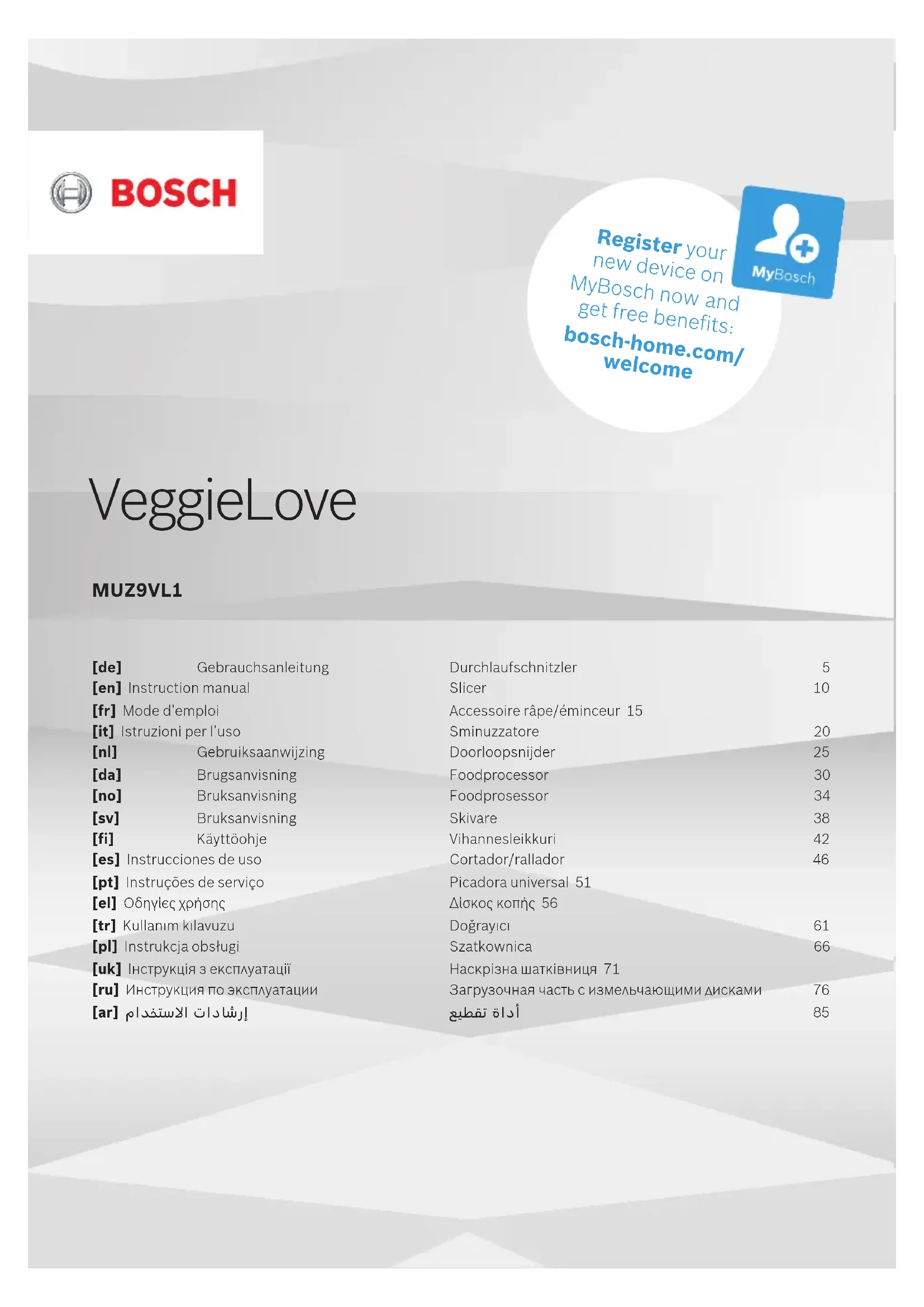 Retrouvez gratuitement la notice de l'appareil MUZ9VL1 BOSCH au format PDF.