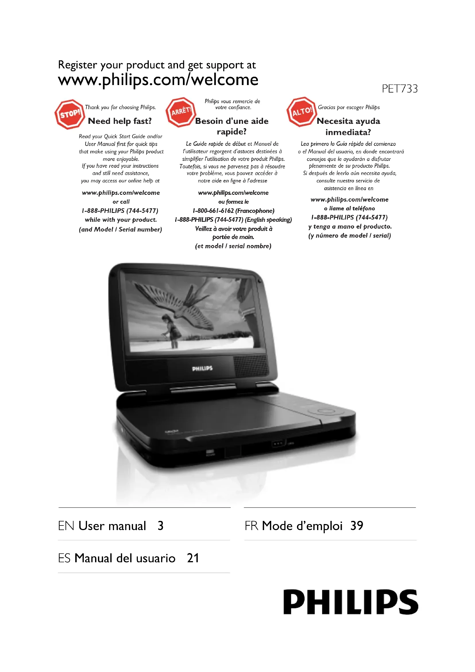 Retrouvez gratuitement la notice de l'appareil PET733 PHILIPS au format PDF.