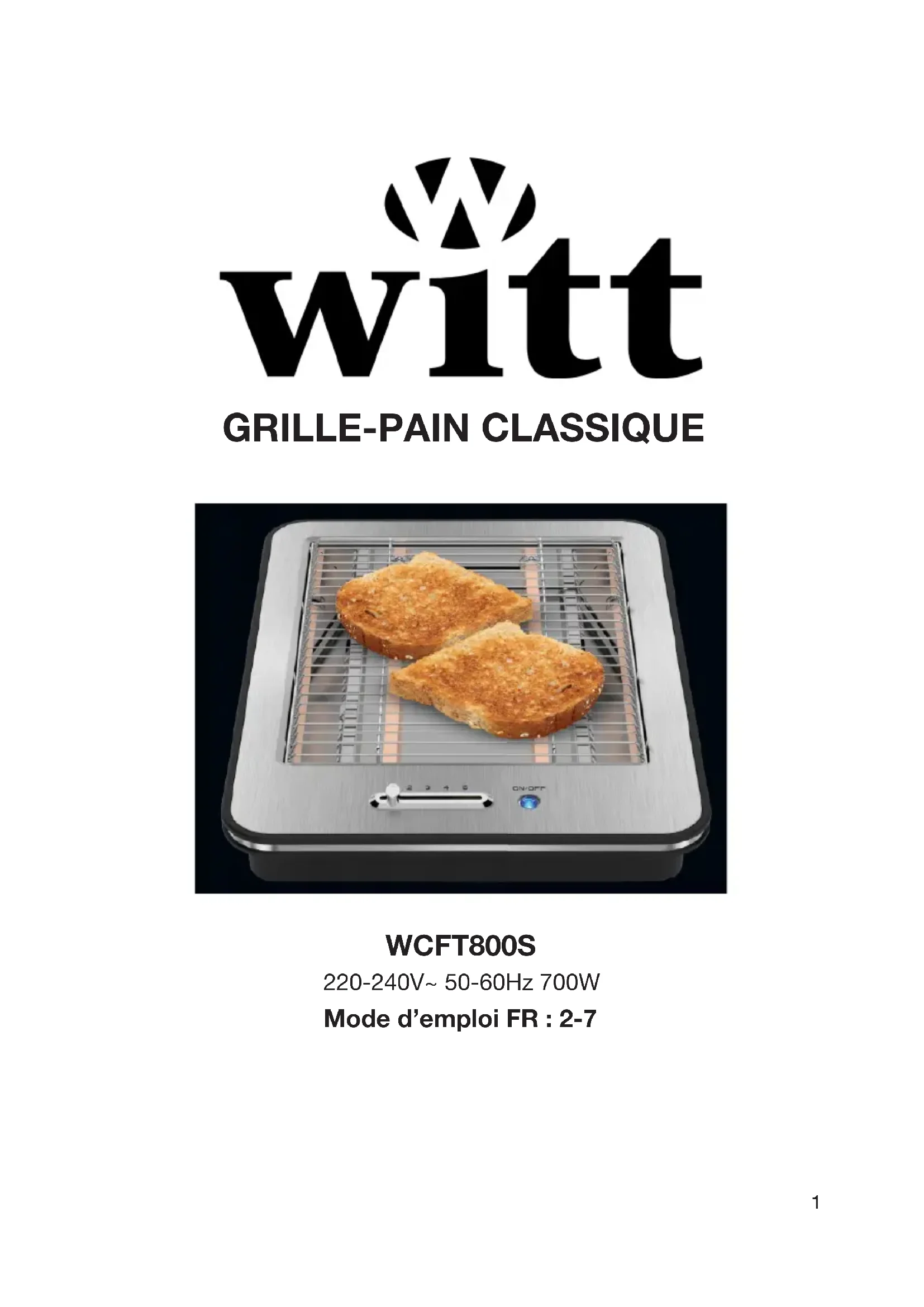 WCFT800S - Grille-pain Witt - Notice d'utilisation et mode d'emploi gratuit