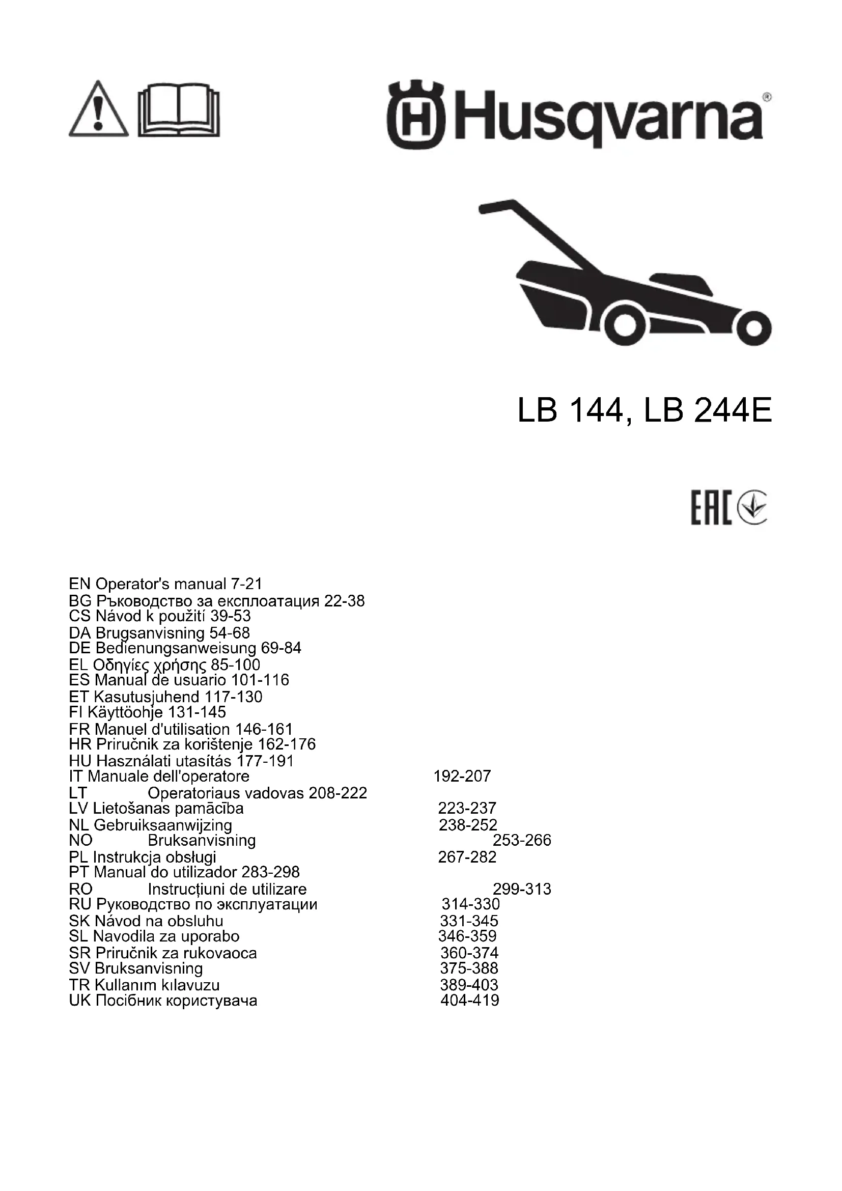 Retrouvez gratuitement la notice de l'appareil LB 244E HUSQVARNA au format PDF.
