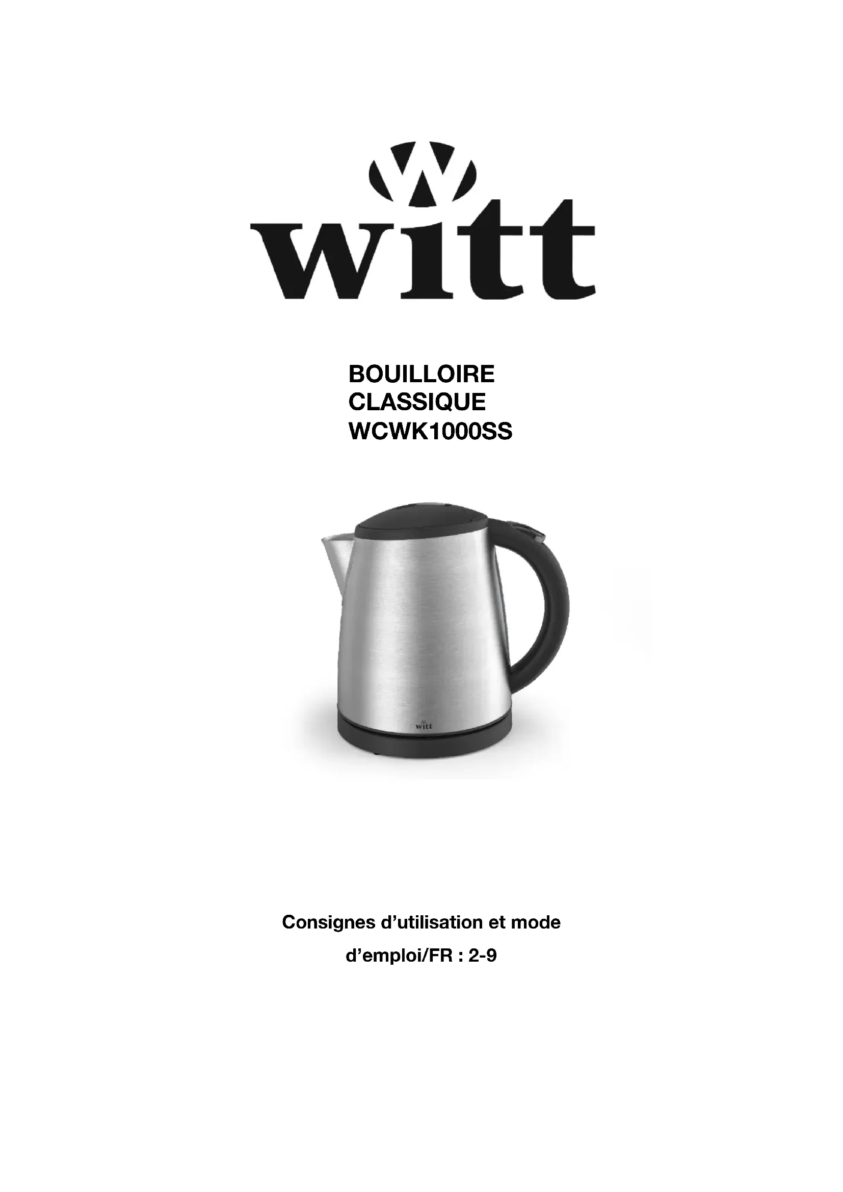 BOUILLOIRE CLASSIQUE WCWK1000SS Consignes d’utilisation et mode d’emploi/FR : 2-92