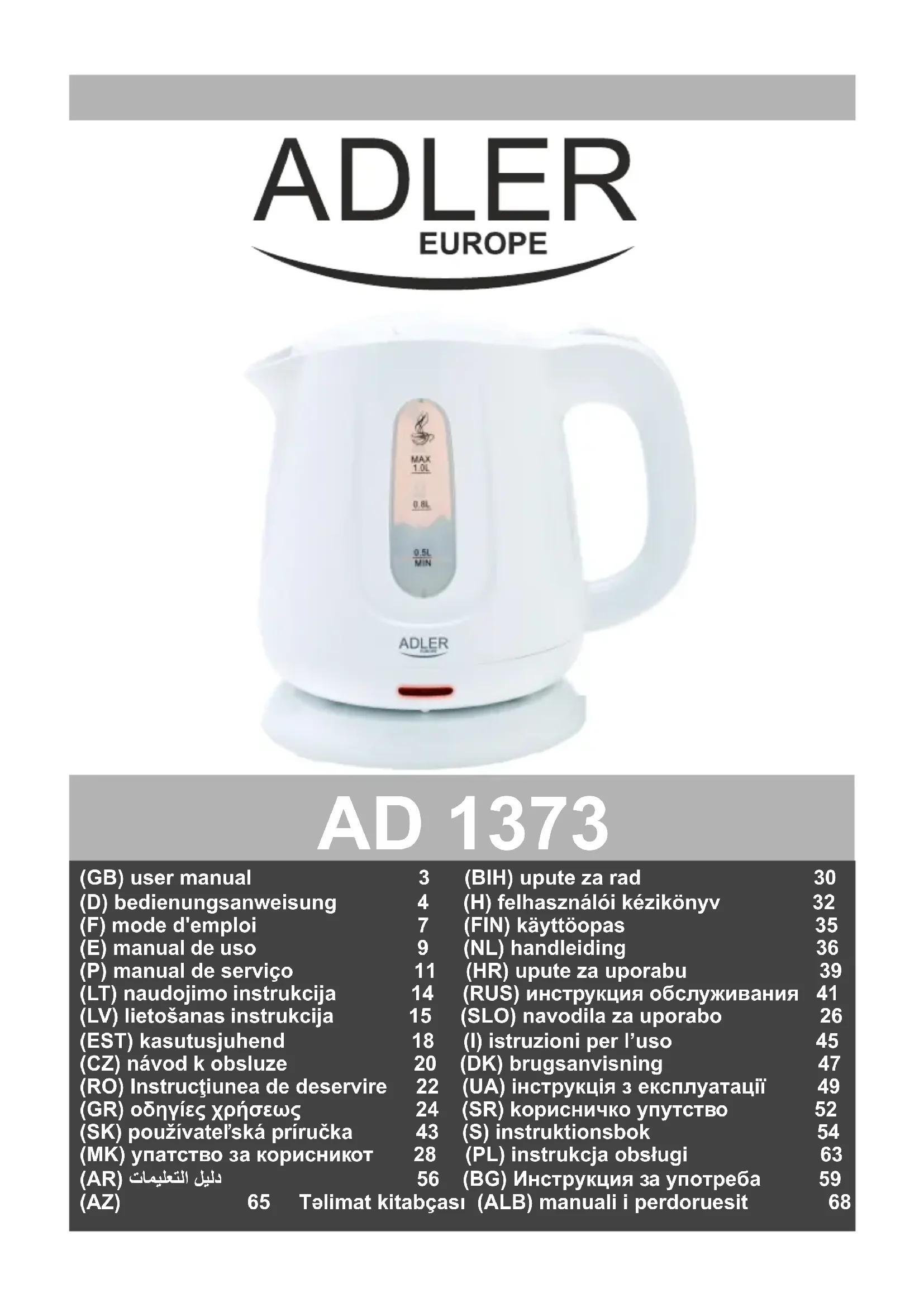 Retrouvez gratuitement la notice de l'appareil AD 1373 ADLER au format PDF.