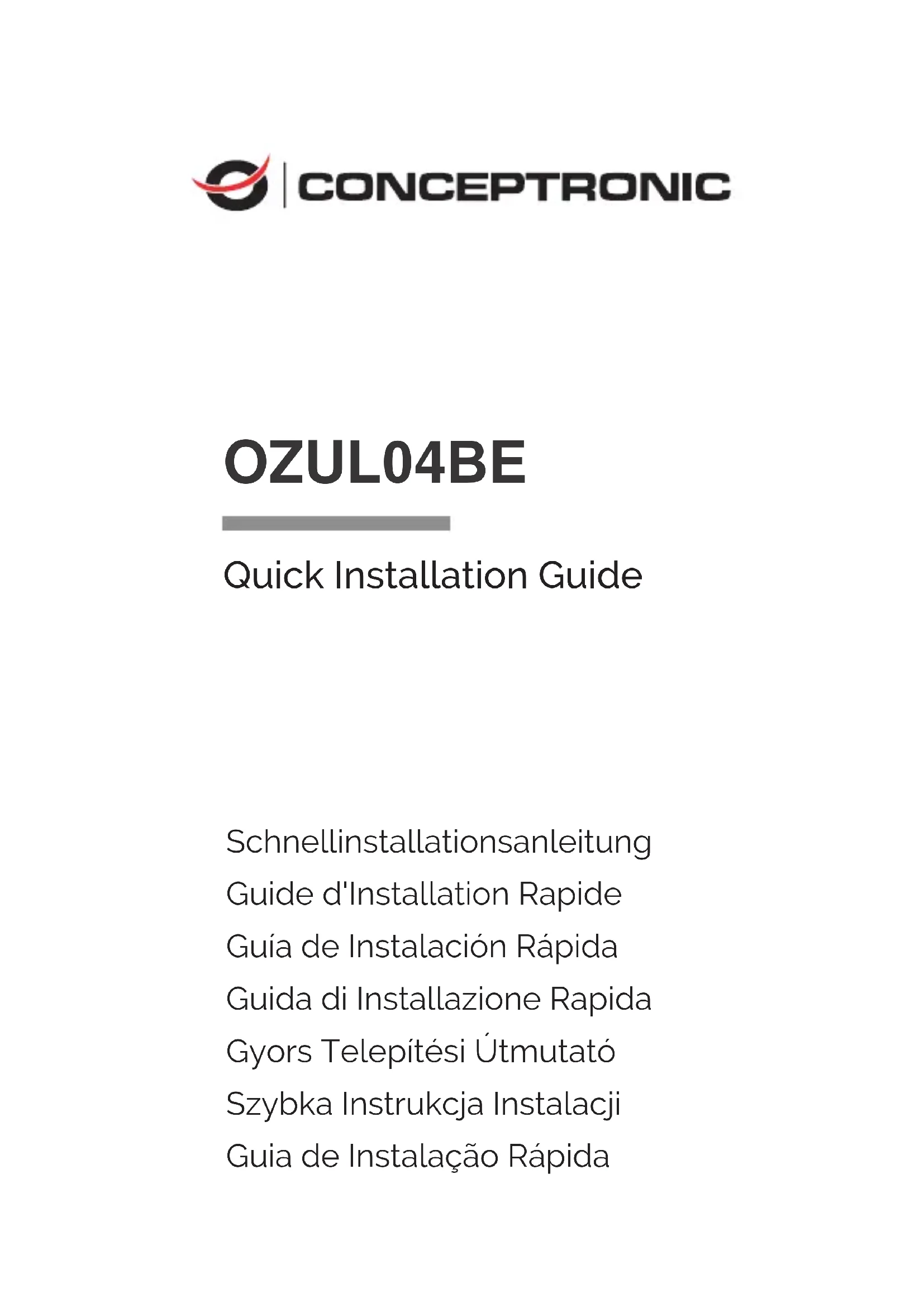 Marcado CE: Conceptronic declara que este producto cumple las directivas enumeradas en la sección “Declaración de conformidad”.Français Nous vous félicitons d'avoir acheté le OZUL04BE de Conceptronic. En cas de problèmes, nous vous recommandons de vous adresser à notre service technique (rendez-vous sur www.conceptronic.net et cliquez sur « support »). Si vous avez d'autres questions concernant votre produit et que vous ne trouvez pas de réponse sur notre site web, contactez-nous par e-mail : support@conceptronic.net. Pour obtenir plus d'informations sur les produits Conceptronic, visitez notre site internet Conceptronic : www.conceptronic.net. Installation & Utilisation