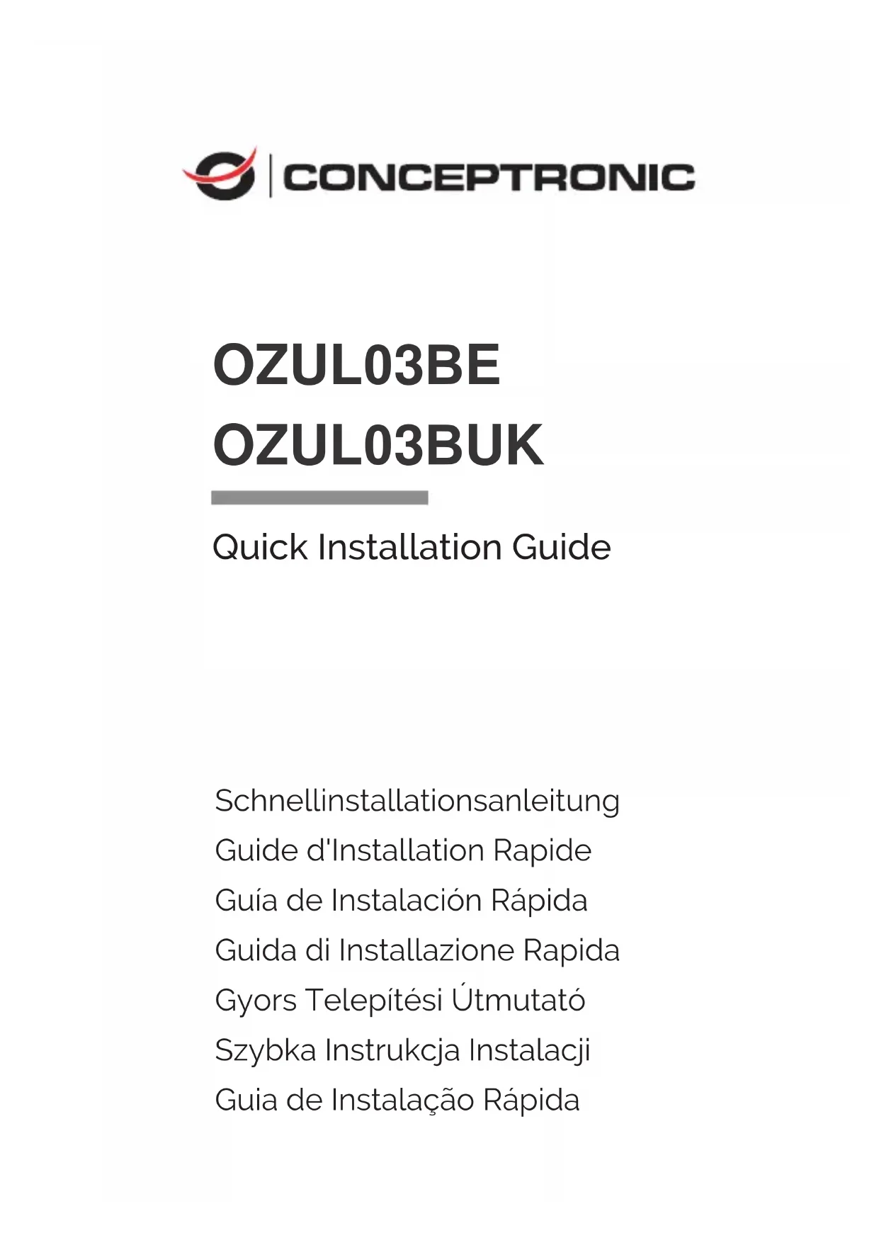 Marcado CE / UKCA: Conceptronic declara que este producto cumple las directivas enumeradas en la sección “Declaración de conformidad”.Français Nous vous félicitons d'avoir acheté le OZUL03BE/OZUL03BUK de Conceptronic. En cas de problèmes, nous vous recommandons de vous adresser à notre service technique (rendez-vous sur www.conceptronic.net et cliquez sur « support »). Si vous avez d'autres questions concernant votre produit et que vous ne trouvez pas de réponse sur notre site web, contactez-nous par e-mail : support@conceptronic.net. Pour obtenir plus d'informations sur les produits Conceptronic, visitez notre site internet Conceptronic : www.conceptronic.net. Installation & Utilisation