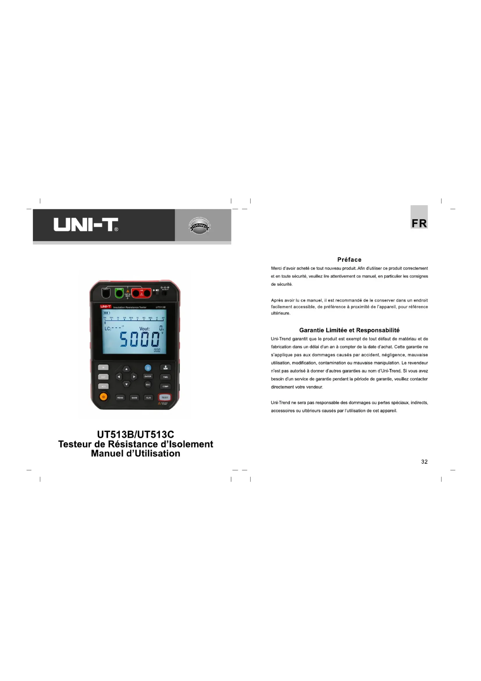 Y a-t-il une garantie pour le Uni-T UT513C ?
