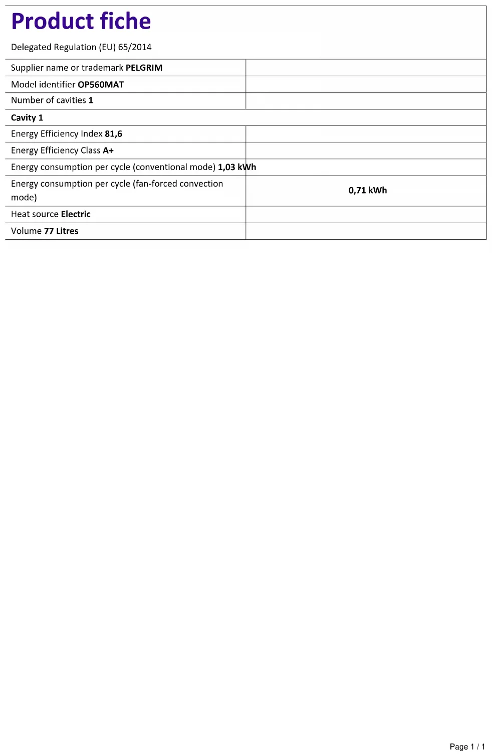OP560MAT - Four Pelgrim - Notice d'utilisation et mode d'emploi gratuit