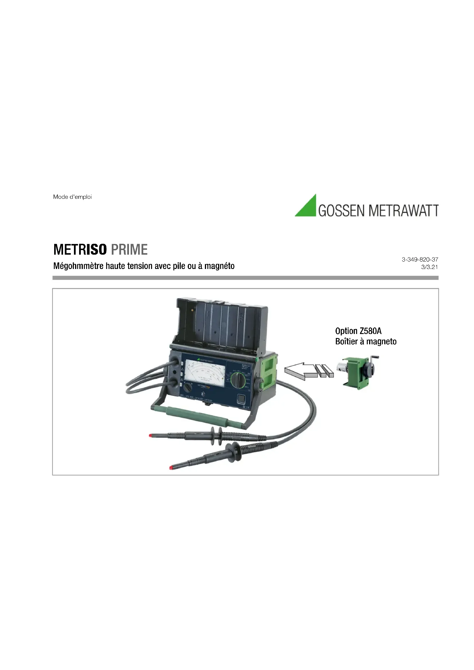 Retrouvez gratuitement la notice de l'appareil METRISO PRIME Gossen Metrawatt au format PDF.