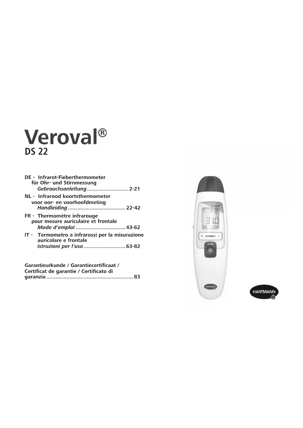 MODE D'EMPLOI Veroval DS 22 Hartmann