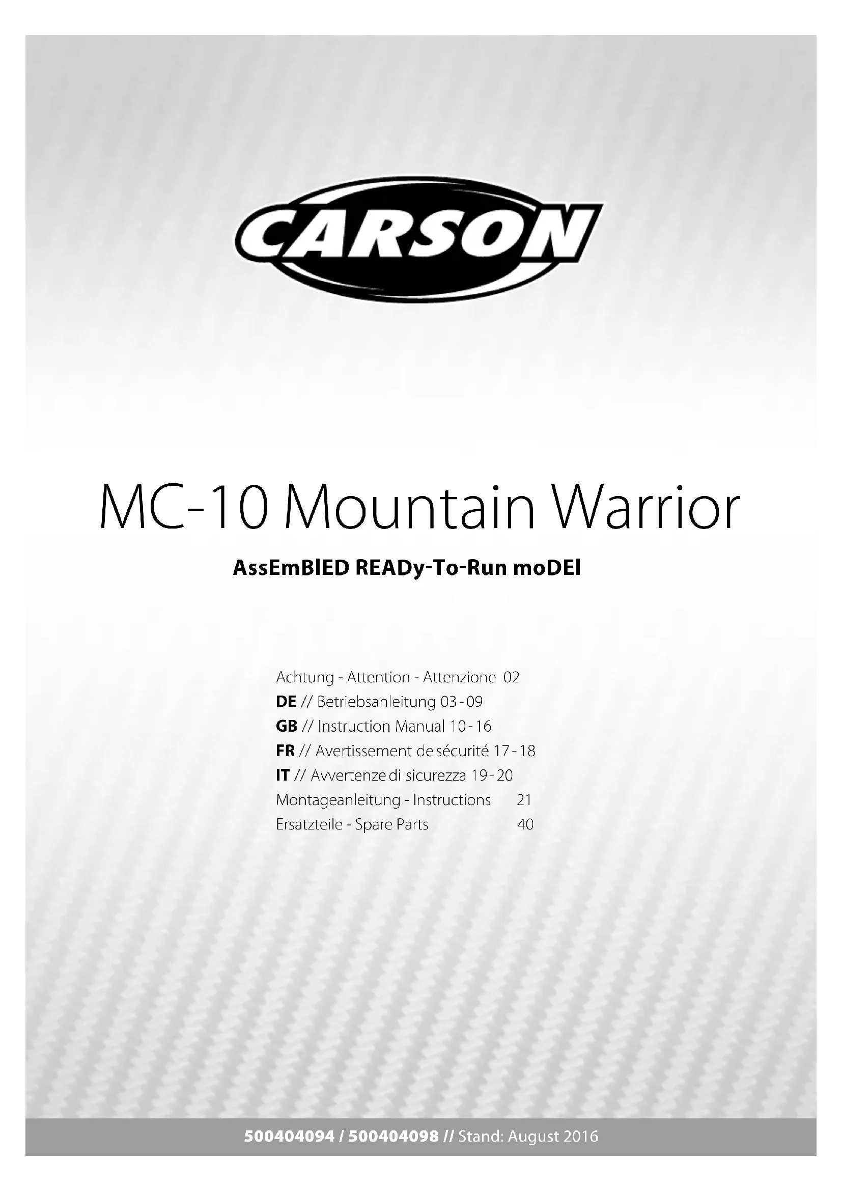 MC-10 Mountain Warrior - Maquettisme Carson - Notice d'utilisation et mode d'emploi gratuit