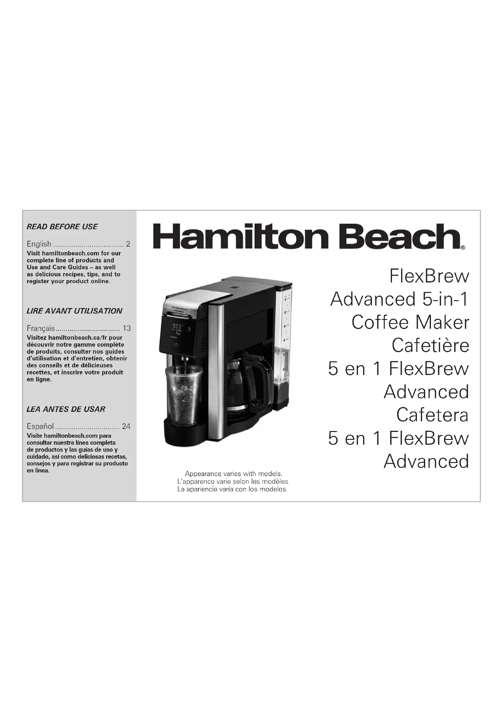 Retrouvez gratuitement la notice de l'appareil FlexBrew 49965 HAMILTON BEACH au format PDF.