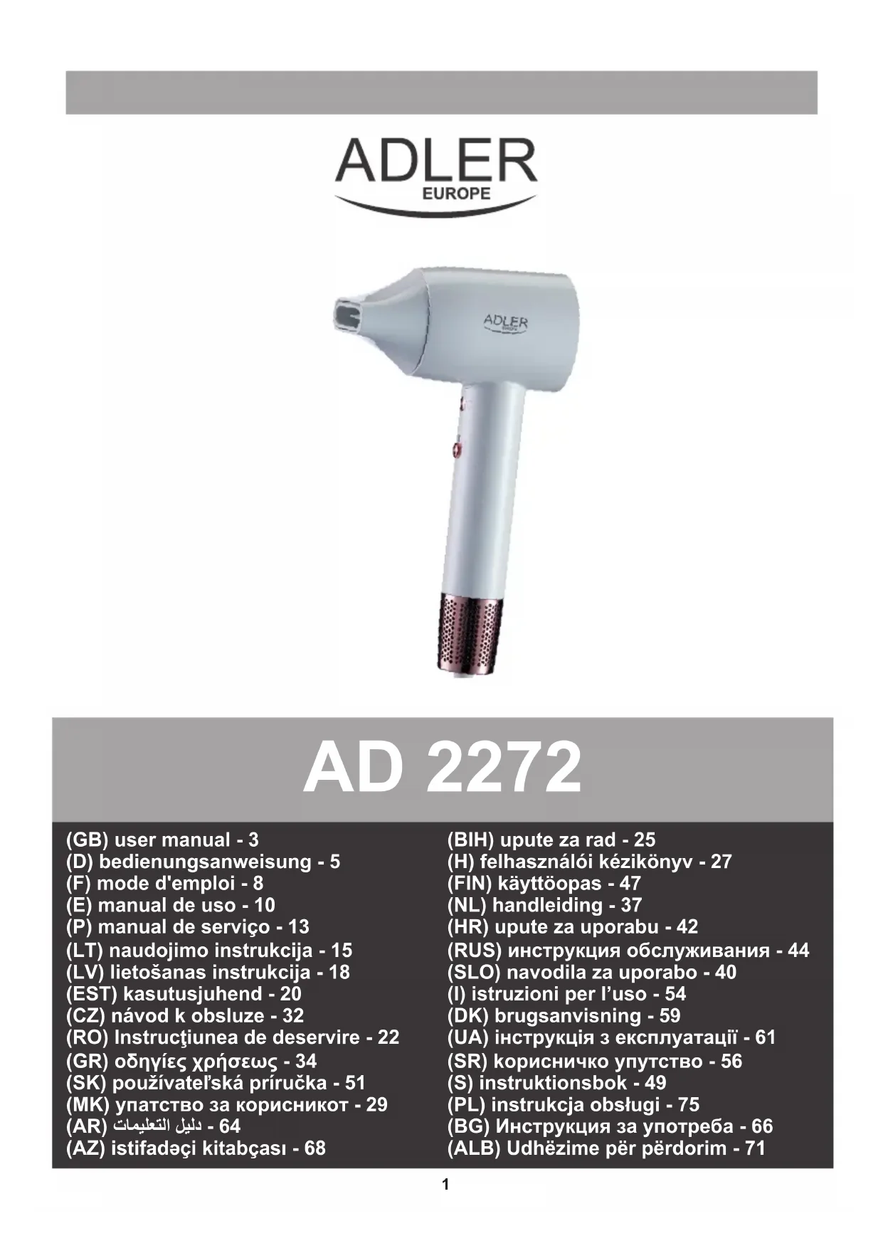 Retrouvez gratuitement la notice de l'appareil AD 2272 ADLER au format PDF.