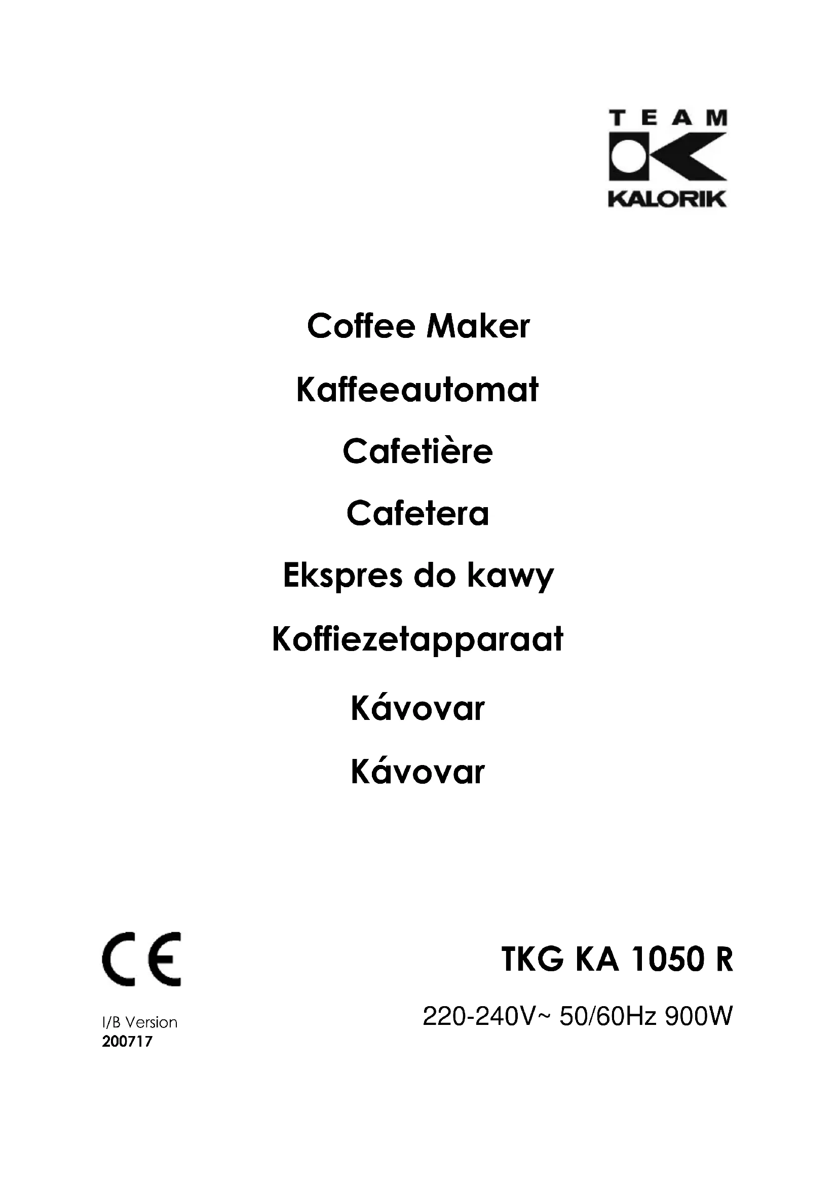 ❑ Veillez à ne pas utiliser l'appareil à l'extérieur et entreposez-le dans un endroit sec. ❑ Ne pas utiliser des accessoires non recommandés par le fabricant, cela peut présenter un danger pour l’utilisateur et risque d’endommager l’appareil. ❑ Ne déplacez jamais l’appareil en tirant sur le câble. Posez cet appareil sur un support stable et veillez à ce que le câble ne puisse pas être accroché afin d’éviter toute chute. ❑ N’utilisez pas votre appareil si la verseuse est abîmée. ❑ Utilisez uniquement la verseuse livrée avec votre appareil. Attention : votre verseuse devient chaude pendant le fonctionnement. Tenez-la uniquement par sa poignée. ❑ Veillez à ce que l’appareil n’entre pas en contact avec des matériaux facilement inflammables comme les rideaux, les tissus,... lorsqu’il est en fonctionnement. ❑ Lors du détartrage, n’utilisez que de produits spécialement étudiés. Ne faites pas usage d’ammoniac ou de toute autre substance qui pourrait nuire à votre santé. ❑ Ne mettez rien d’autre que du café moulu dans le filtre à café. ❑ Ne faites pas fonctionner votre cafetière sans eau. ❑ Ne placez jamais la verseuse dans le four à micro-ondes. ❑ Toute utilisation inappropriée est dangereuse et susceptible d’endommager l’appareil. La garantie ne sera plus d’application et le fabricant ne saurait être tenu responsable des dommages qui en résulteraient. (*) Service qualifié compétent: service après-vente du fabricant ou de l'importateur ou une personne qualifiée, reconnue et habilitée à faire ce genre de réparation afin d'éviter tout danger. Dans tous les cas, veuillez retourner l'appareil auprès de ce service.TKG KA 1050 R
