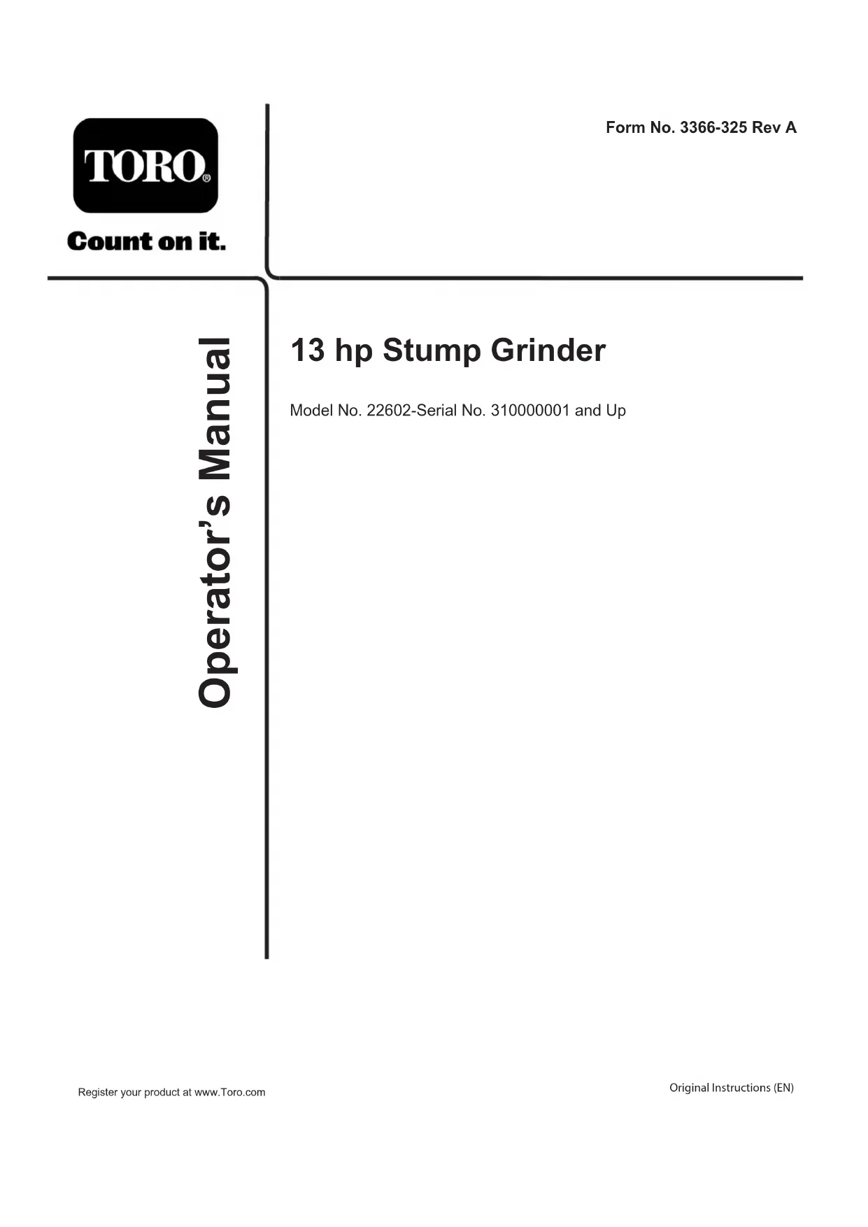 Téléchargez la notice de votre Non catégorisé au format PDF gratuitement ! Retrouvez votre notice 22602 - TORO et reprennez votre appareil électronique en main. Sur cette page sont publiés tous les documents nécessaires à l'utilisation de votre appareil 22602 de la marque TORO.