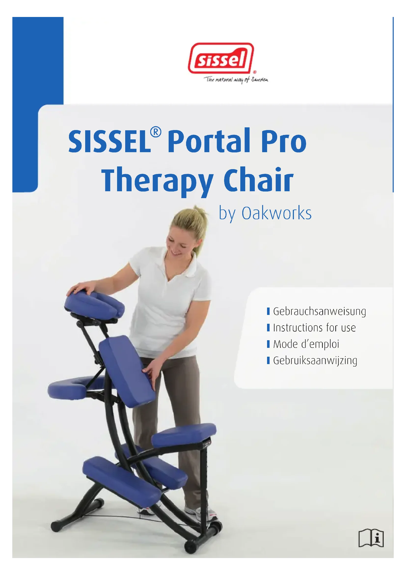 30950 • GA Portal Pro_GA Hydrotemp 02.07.15 10:07 Seite 11DescriptifLa chaise de massage Portal Pro SISSEL est portable. Elle a initialement été conçue pour un usagethérapeutiques et professionnel. Une formation spécifique n’est pas nécessaire avant son utilisation.Le thérapeute doit cependant minutieusement lire ce mode d’emploi avant de traiter le patient. Iln’y a pas de contre-indications connues pour ce produit.Explication des symbolesLorsqu’un symbole apparaît dans le mode d’emploi ou sur le produit, c’est un avertissementqui indique qu’il est nécessaire de le lire et de s’en tenir aux mesures indiquées.Indications de sécurité importantesLire le mode d’emploi attentivement et le conserver I Poids maximal : (patient et accessoires): ne pas dépasser la limite de 159 kg.I Cette chaise de massage est un équipement complet. Elle ne doit ni être modifiée ni incorporée dans d’autres équipements.I Cette chaise est pliable. Faire attention de ne pas vous coincer les doigts.I Ne pas l’installer sur un siège.I Utiliser la chaise de massage sur une surface plane.I Utiliser cette chaise de massage seulement pour l’usage pour lequel elle a été conçue comme indiqué dans ce mode d’emploi.Explication de la chaise de massageEn option :I Coussin sternumI Sangle de transportI Sac de transportI Housses têtière Chaise de massage Portal Pro SISSEL