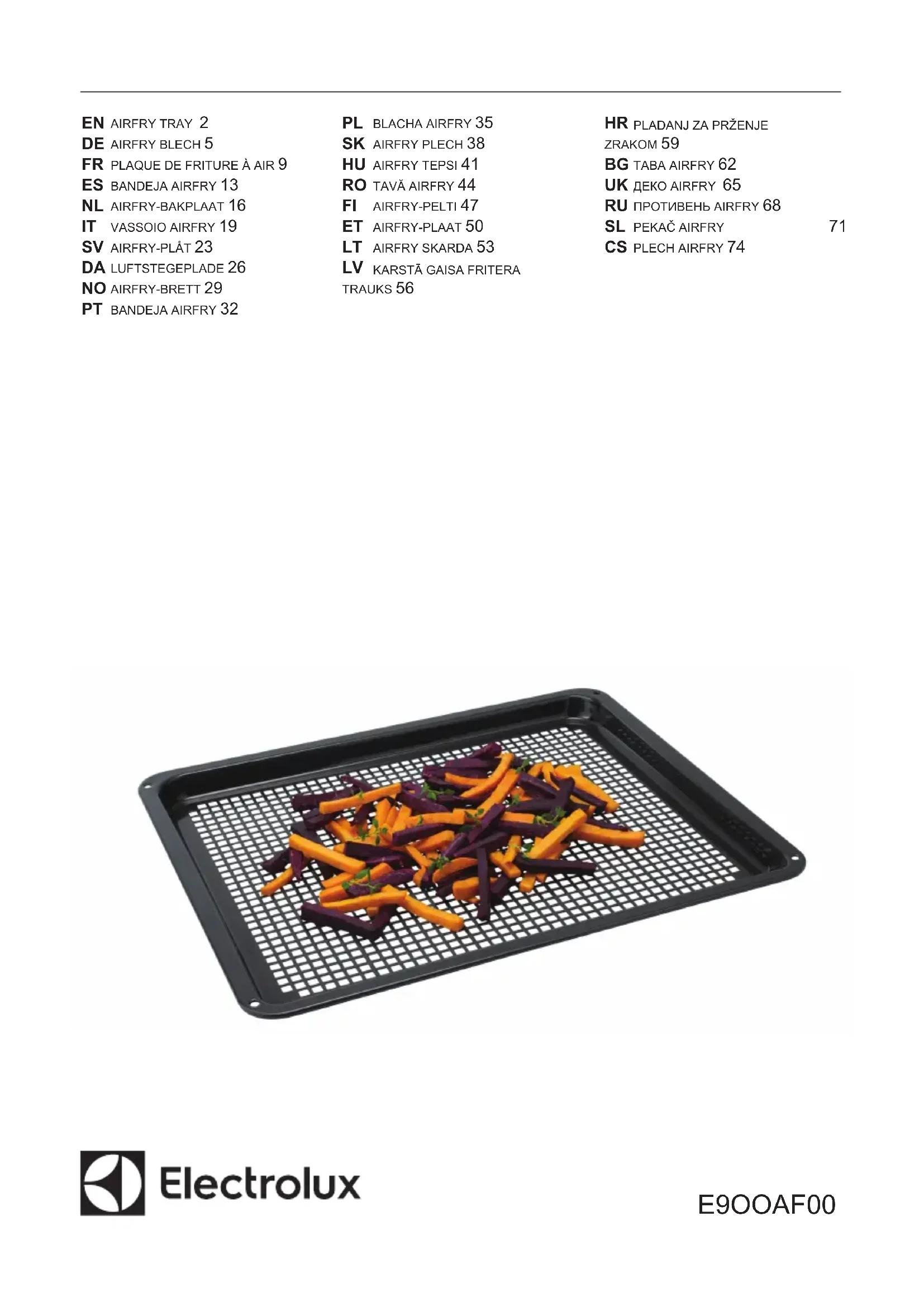 deviennent chauds pendant l’utilisation. Veillez à ne pas toucher les éléments chauffants. Utilisez toujours des gants de cuisine. Tenez les matières grasses éloignées des flammes et des objets chauds durant la cuisson. La matière grasse chaude peut dégager des vapeurs inflammables. N'utilisez pas le produit dans un four micro-ondes. FRANÇAIS 9N'utilisez pas le produit endommagé. Utilisez-le uniquement avec des appareils Electrolux / AEG / Zanussi compatibles. Considérations environnementales Recycler les matériaux portant le symbole . Placez l’emballage dans les conteneurs prévus pour le recycler.