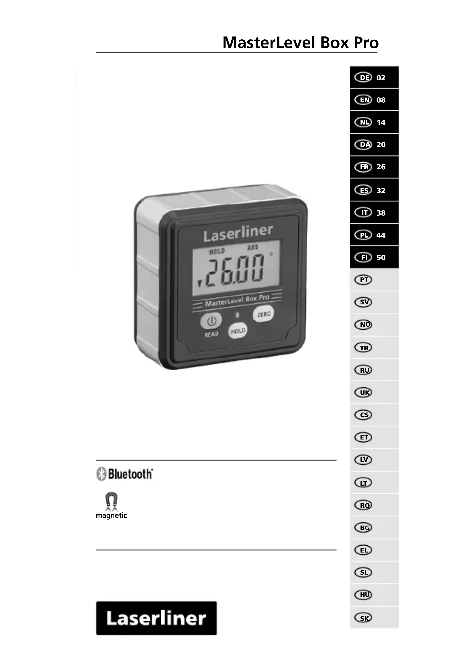 Retrouvez gratuitement la notice de l'appareil MasterLevel Box Pro Laserliner au format PDF.