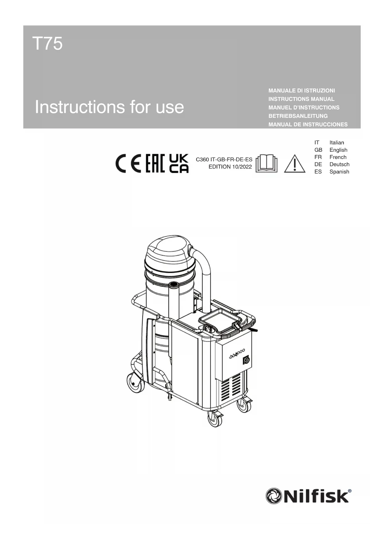 Retrouvez gratuitement la notice de l'appareil T75 NILFISK au format PDF.
