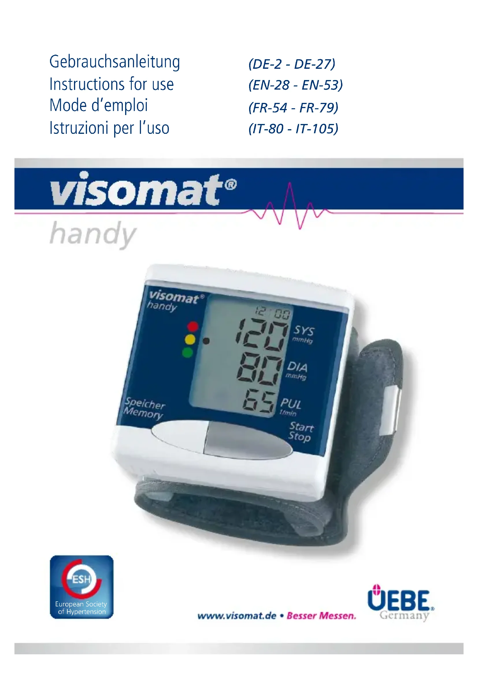 Visomat handy - Tensiomètre UEBE - Notice d'utilisation et mode d'emploi gratuit