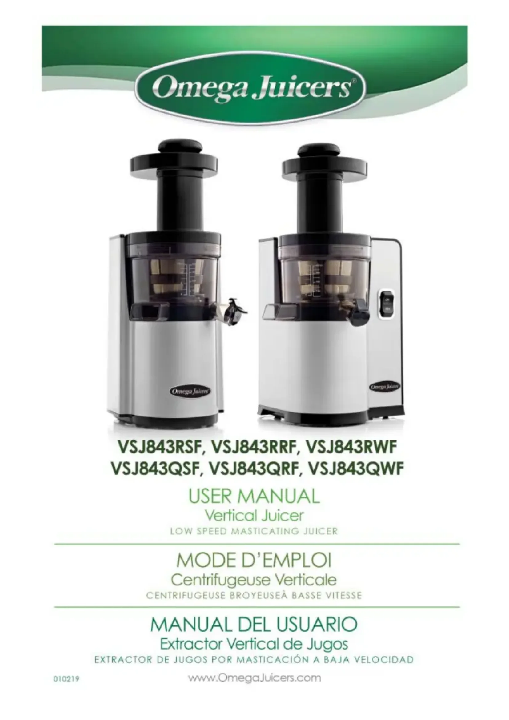 VSJ843RS - Extracteur de jus OMEGA - Notice d'utilisation et mode d'emploi gratuit