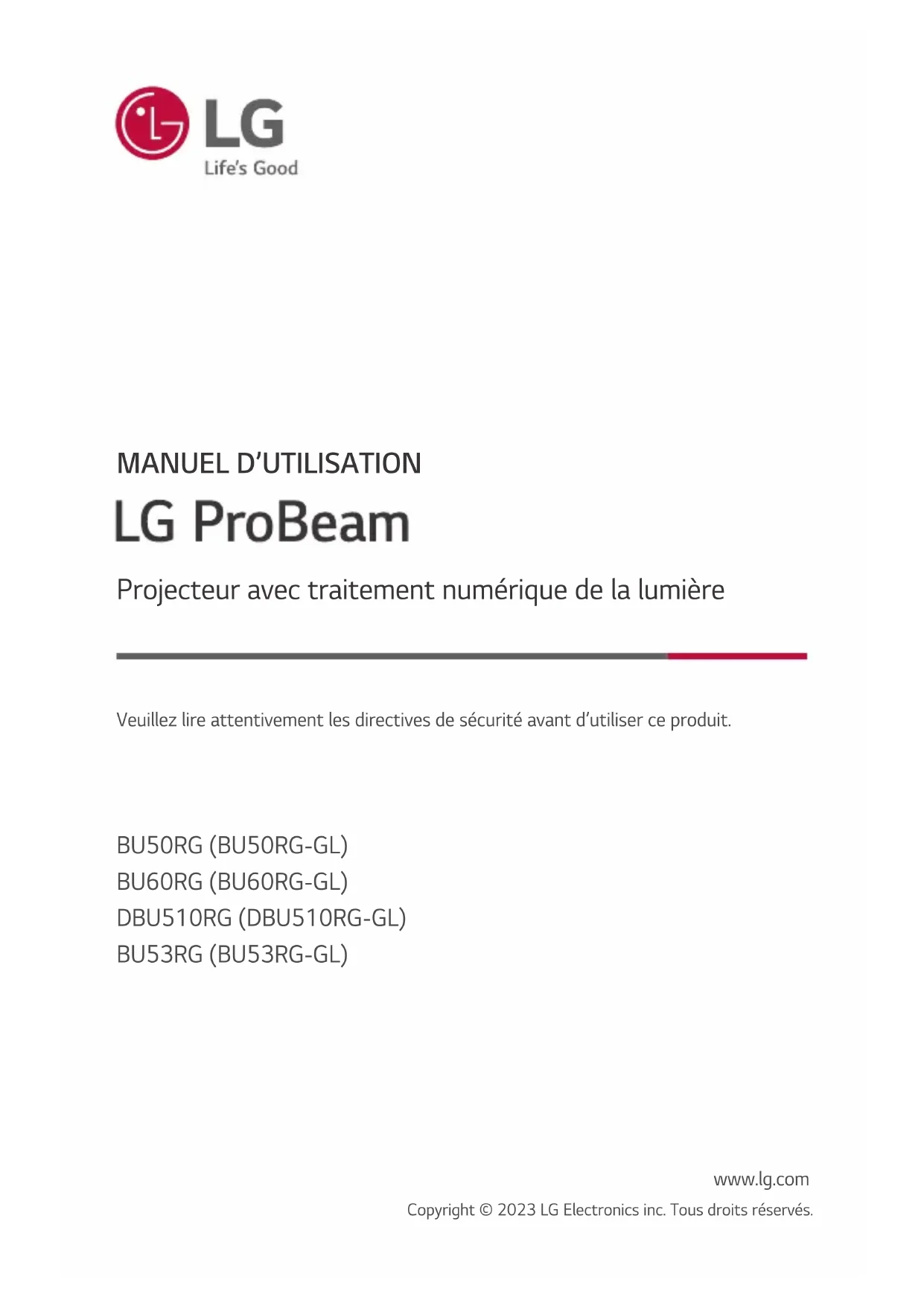 Retrouvez gratuitement la notice de l'appareil ProBeam BU60RG LG au format PDF.