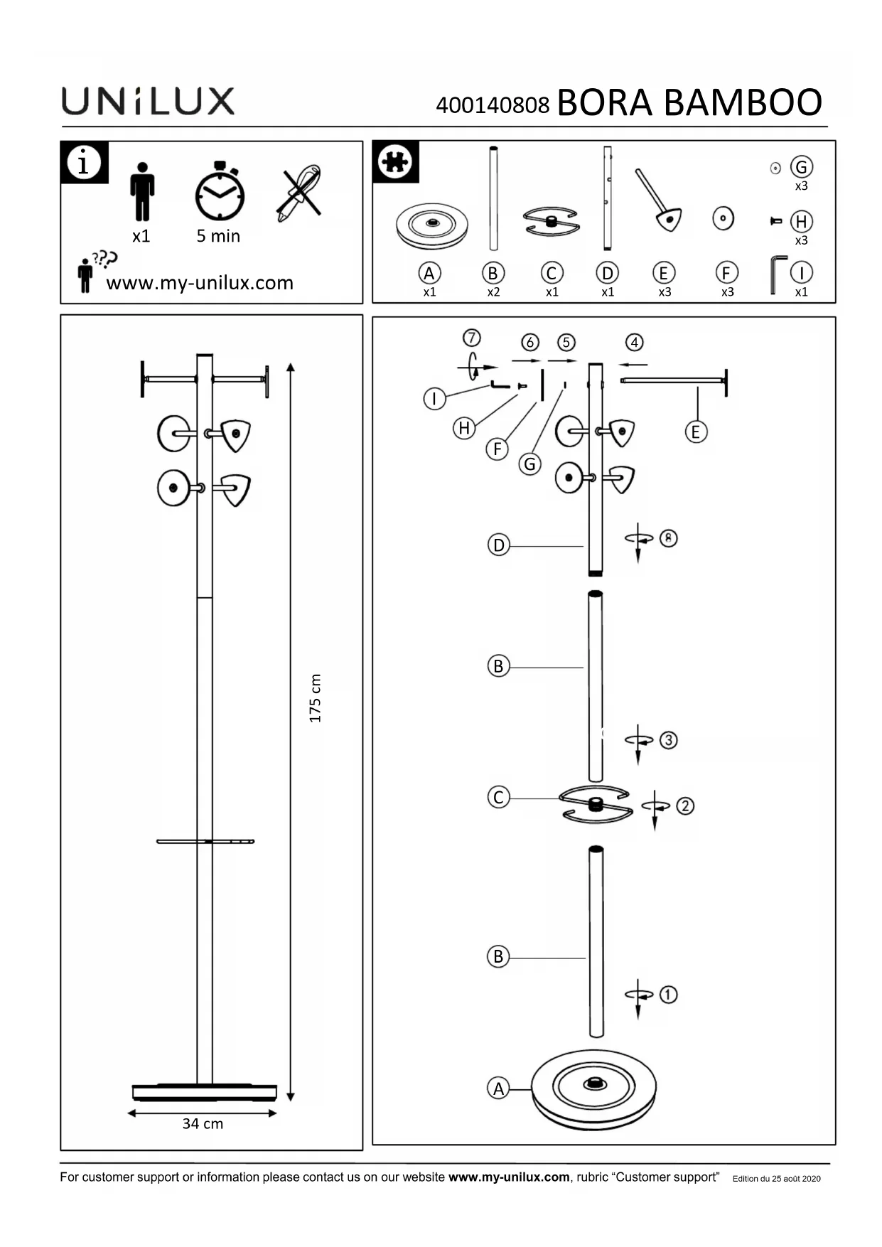 Bora Bamboo - Porte-manteaux Unilux - Notice d'utilisation et mode d'emploi gratuit
