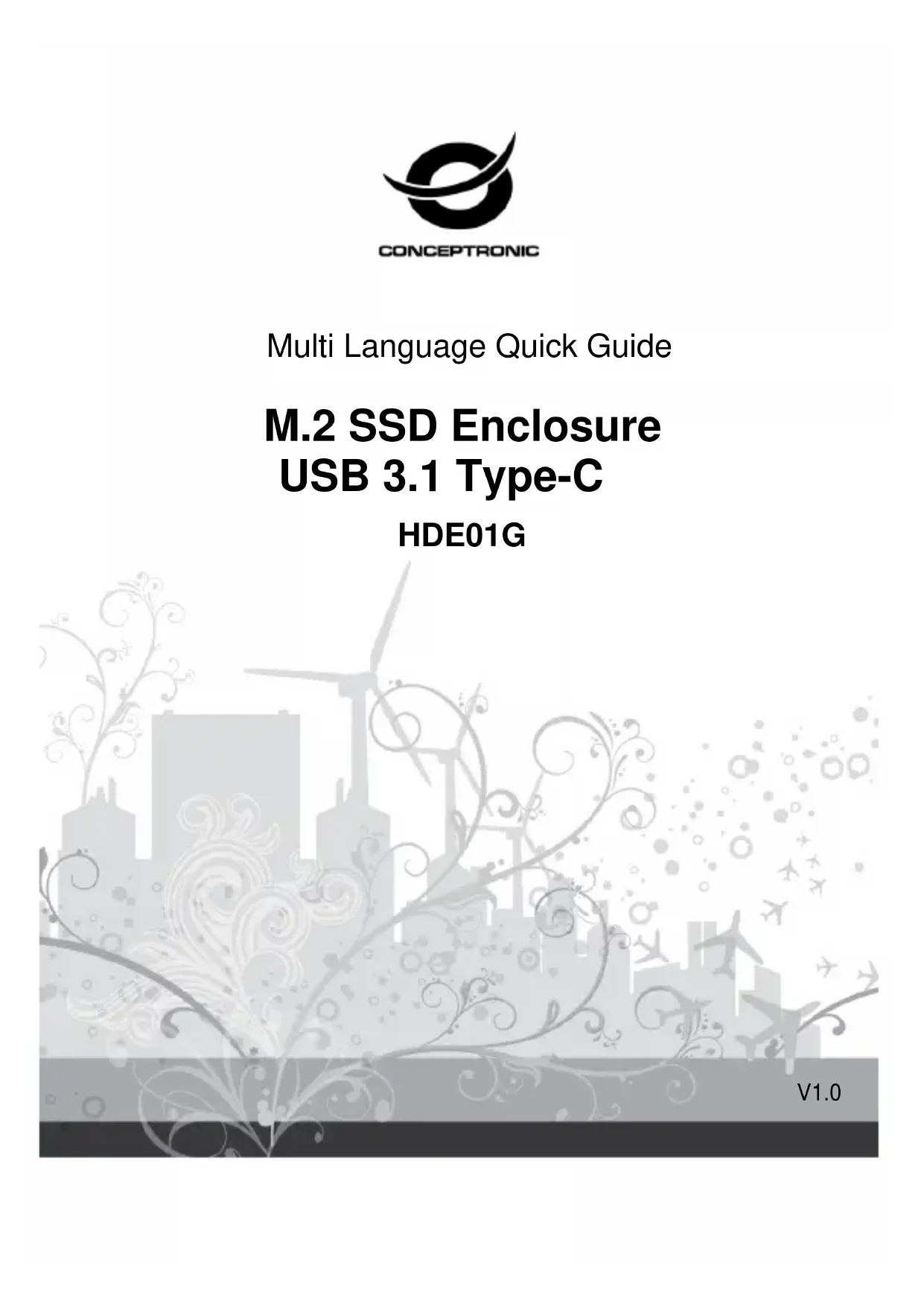 Installation & Utilisation Connexion à l'ordinateur Raccordez le câble USB Type-C au boîtier et à un port USB libre sur votre ordinateur. L'ordinateur reconnaît et installe automatiquement le nouveau matériel. Aucune installation de pilote n'est requise. REMARQUE : Pour bénéficier de la norme USB 3.1 Super Speed jusqu'à 10 Gbit/s, votre ordinateur doit être équipé de ports USB 3.1 intégrés ou d'une carte PCI-e hôte USB 3.0. (Si le câble USB est raccordé à un port USB2.0, la vitesse de transfert descendra à 480 Mbit/s.) Déconnexion de l'ordinateur Le boîtier SSD M.2 doit être retiré correctement avant de le déconnecter de votre ordinateur, afin d'éviter une perte de données. Cliquez deux fois sur l'icône "Retirer le Périphérique en Toute Sécurité" du plateau système. La fenêtre "Retirer le Périphérique en Toute Sécurité" s'affiche alors. Cliquez sur le boîtier SSD M.2 connecté (souvent identifié « Périphérique de stockage de masse USB (USB Mass Storage Device) ») et cliquez sur le bouton « Arrêt (Stop)» Confirmez la déconnexion en cliquant sur "OK". Le boîtier SSD M.2 est à présent retiré correctement de votre ordinateur.ESPAÑ OL Conceptronic HDE01G