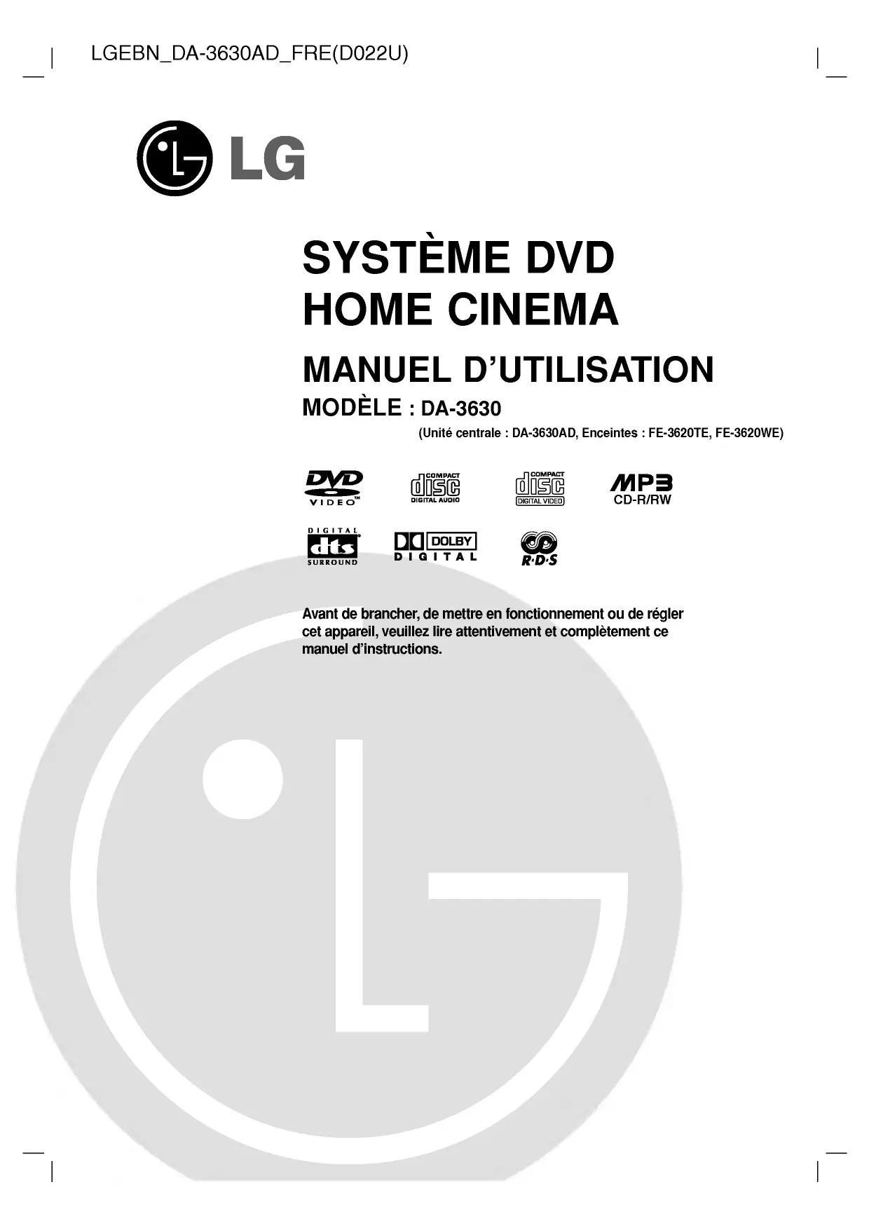 DA-3630AD - Système audio/vidéo LG - Notice d'utilisation et mode d'emploi gratuit