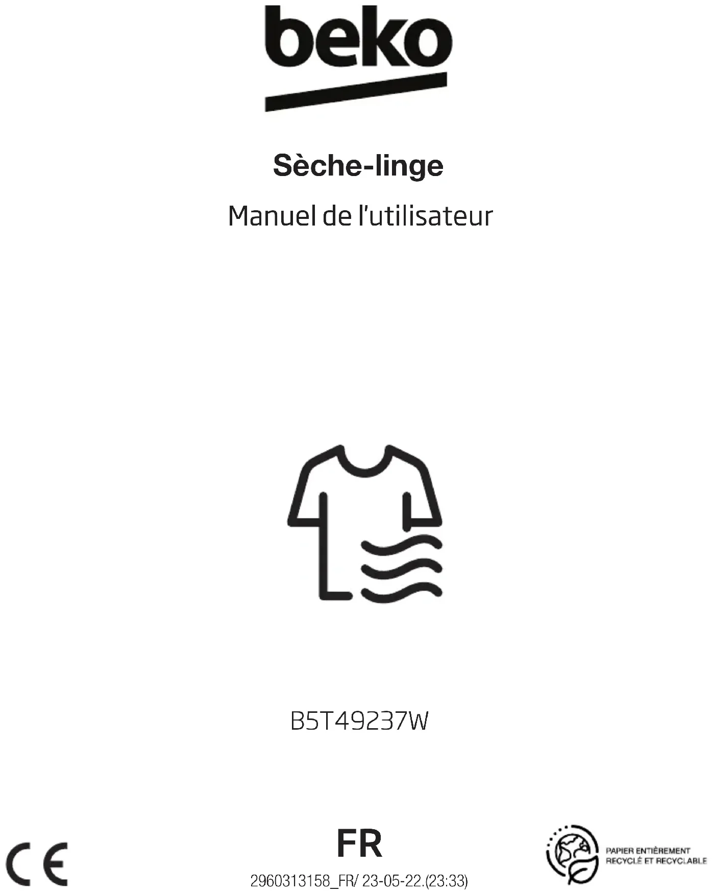 B5T49237W - Seche linge BEKO - Notice d'utilisation et mode d'emploi gratuit