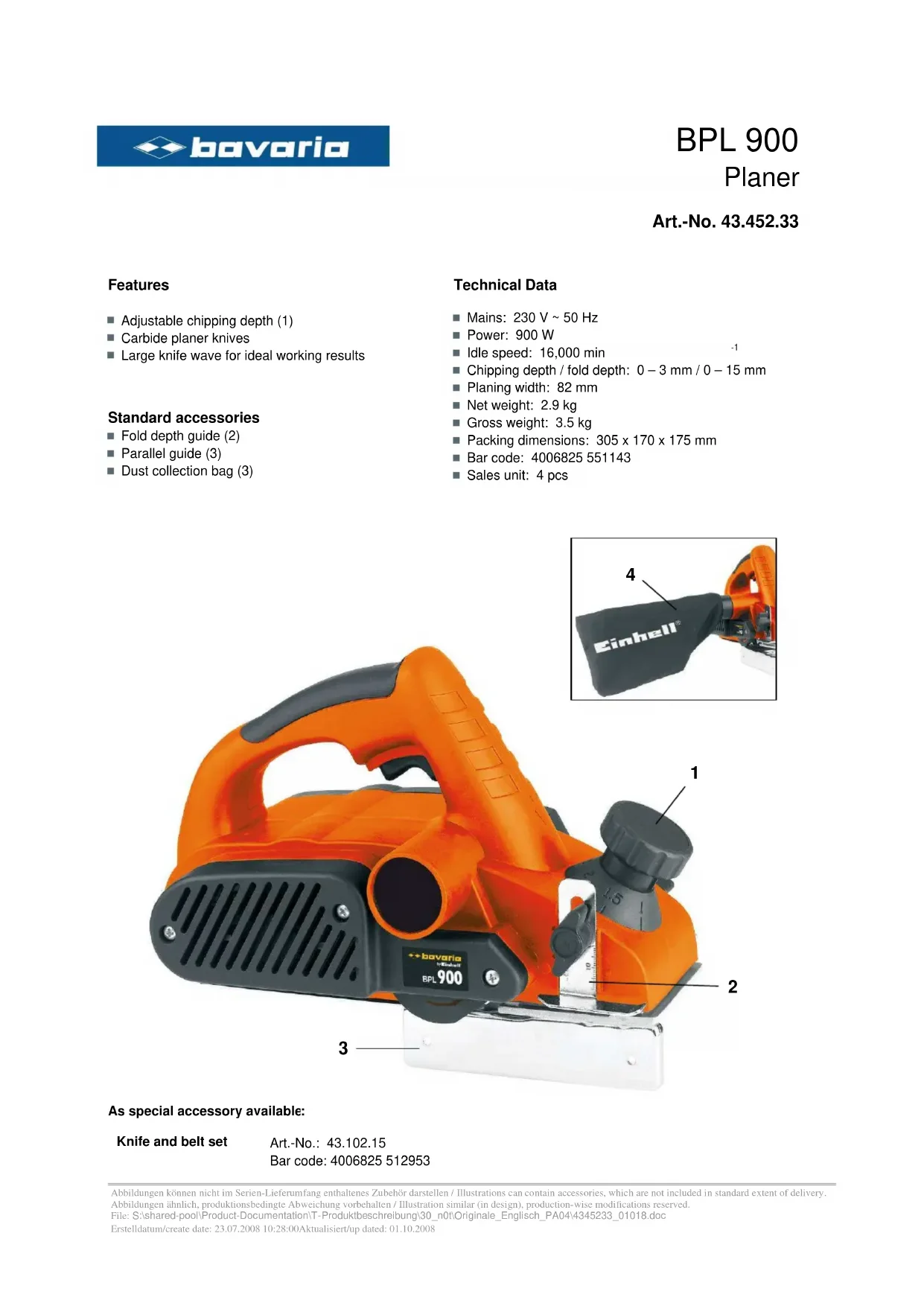 BPL 900 - Rabot Bavaria by Einhell - Notice d'utilisation et mode d'emploi gratuit