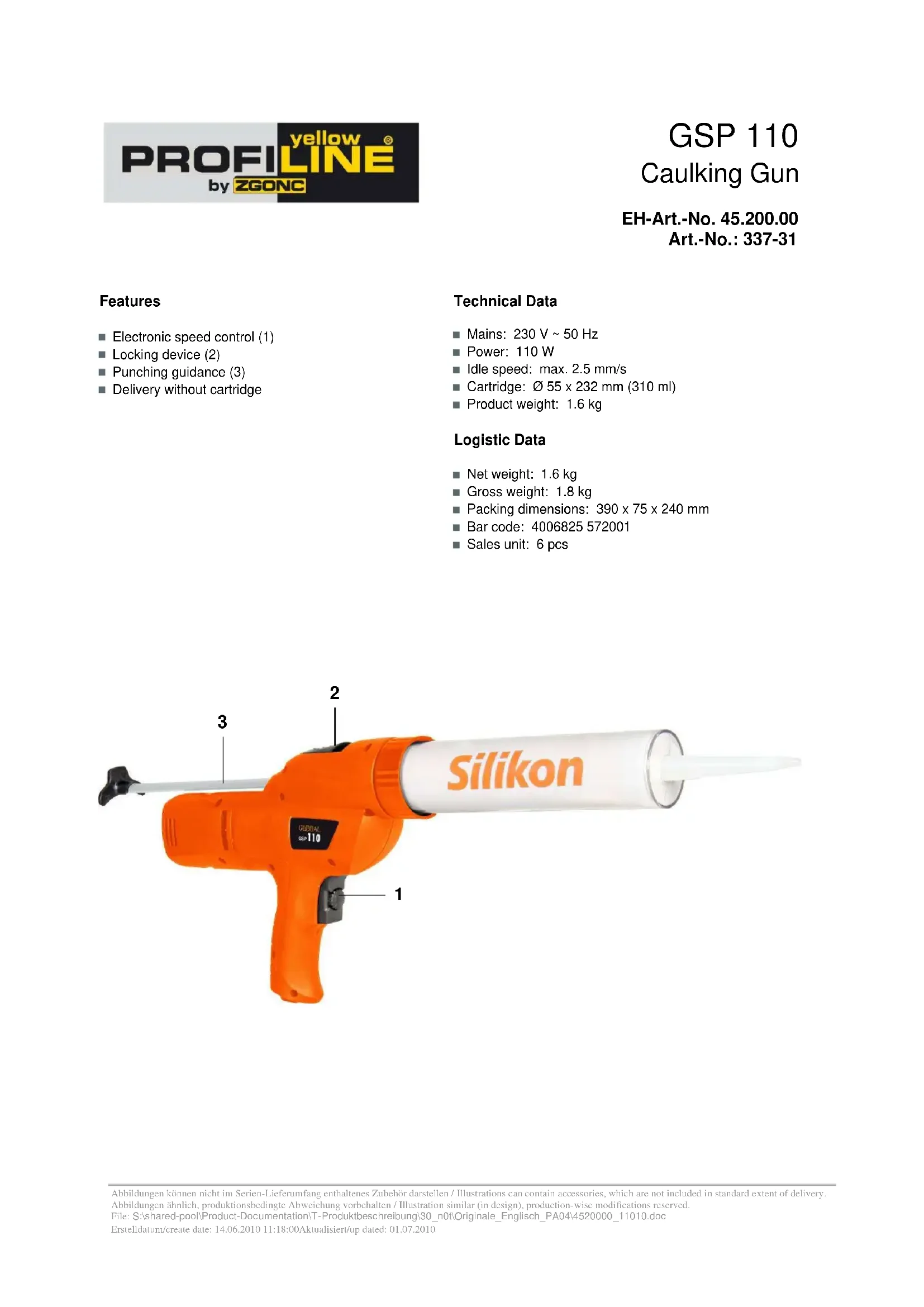 GSP 110 - Pistolet à colle Global - Notice d'utilisation et mode d'emploi gratuit