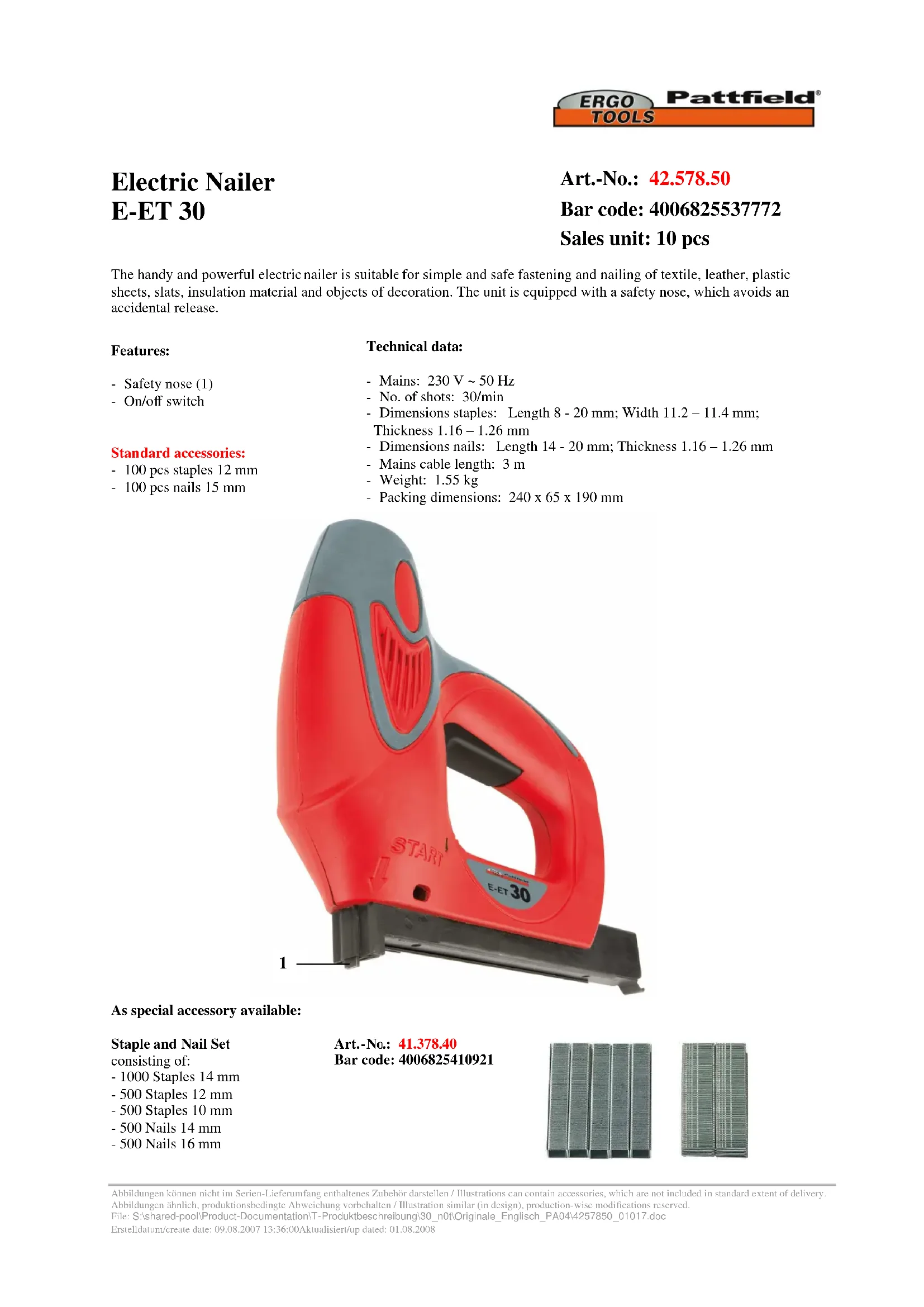 E-ET 30 - Agrafeuse Ergotools Pattfield - Notice d'utilisation et mode d'emploi gratuit