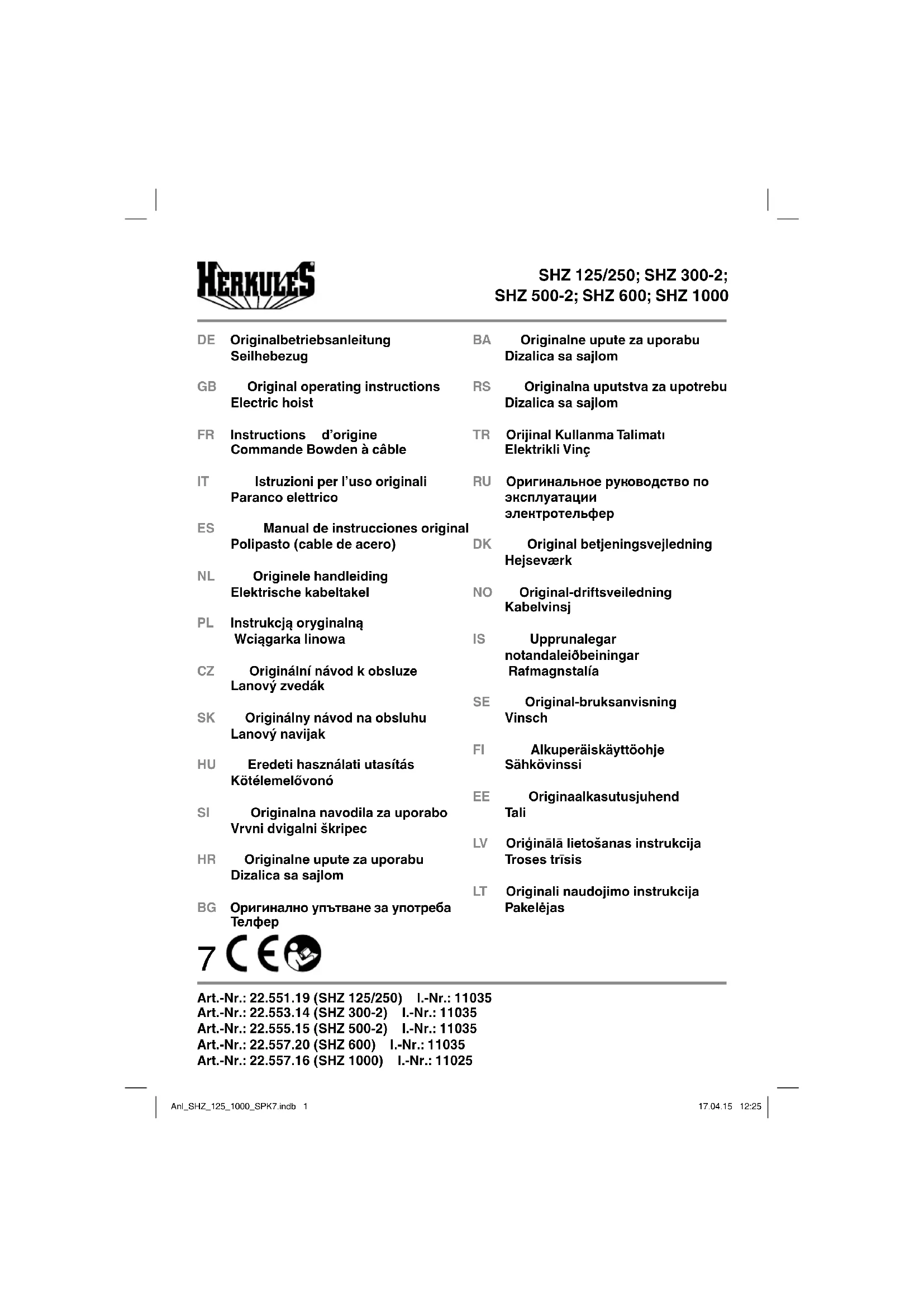 SHZ 300-2 - Palan Herkules - Notice d'utilisation et mode d'emploi gratuit