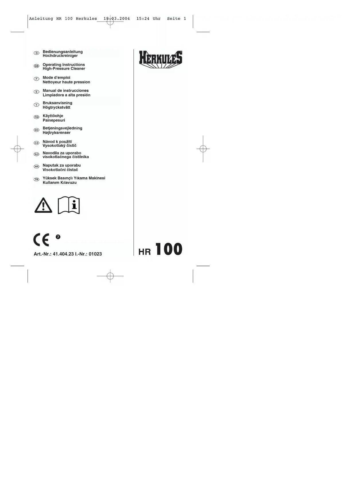 HR 100 - Nettoyeur haute pression Herkules - Notice d'utilisation et mode d'emploi gratuit